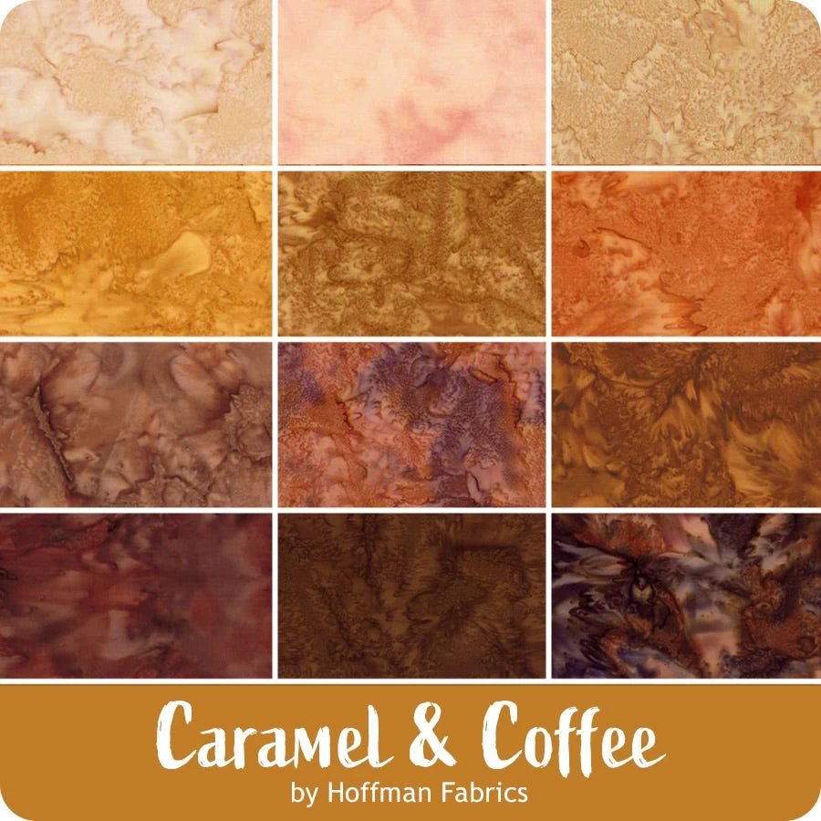 A thickly painted canvas filed with hundreds of cotton batiks. A wide spectrum which tracks from light to dark modes of all the colors in the rainbow. Dip your brush in this bucket of cozy brown tones and you can use the set of perfect backdrops to complement other Hoffman Fabrics prints.