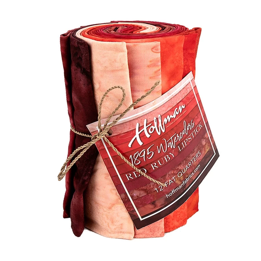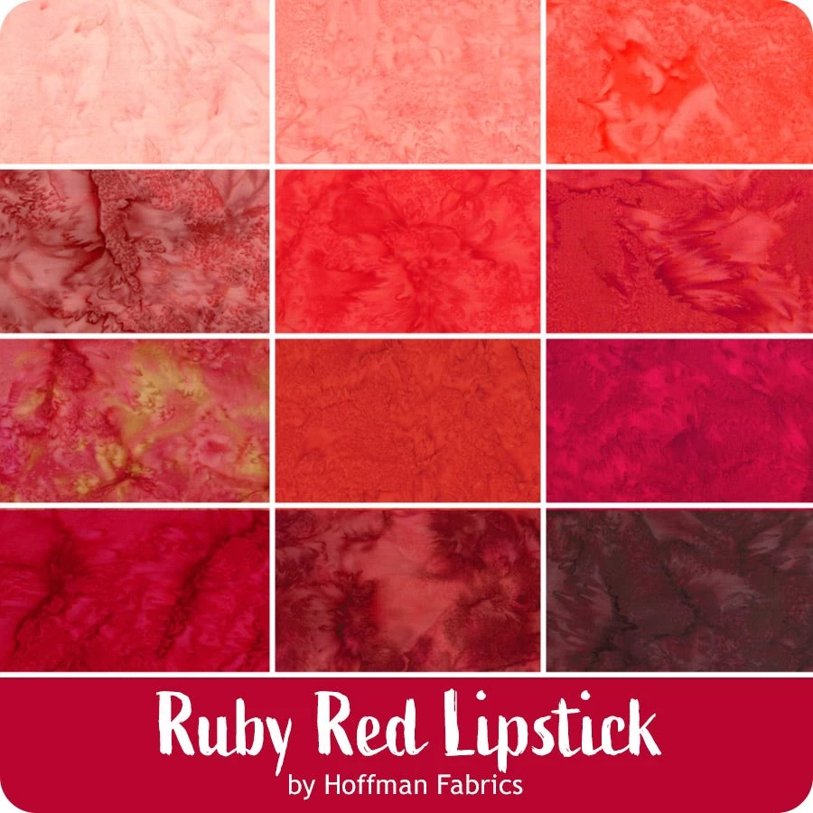 A thickly painted canvas filed with hundreds of cotton batiks. A wide spectrum which tracks from light to dark modes of all the colors in the rainbow. Dip your brush in this bucket of deep red shades and you can use the set of perfect backdrops to complement other Hoffman Fabrics prints.