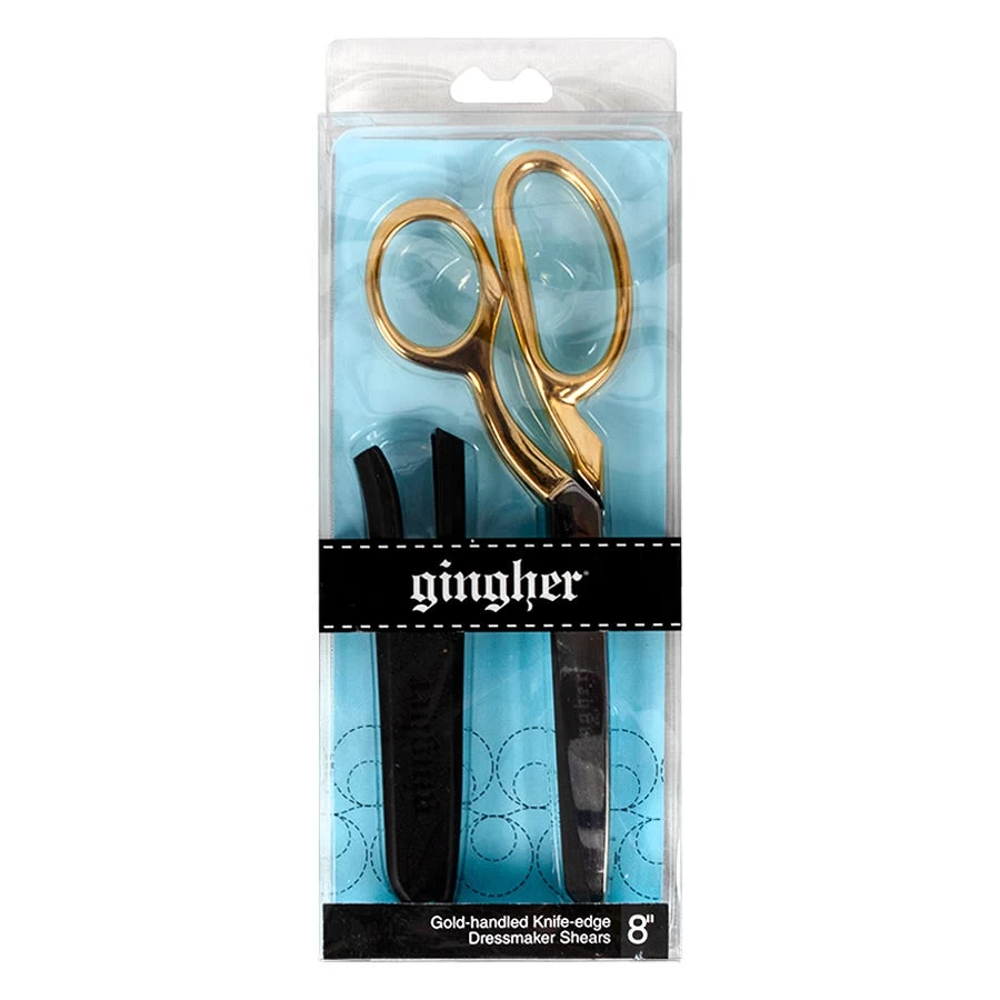 Gingher 8″ Gold Handled Knife Edge Dressmaker Shears are perfect for cutting patterns or through multiple layers of fabric with ease. They feature gold-plated handles that add a touch of elegance to these classic, high-quality scissors.