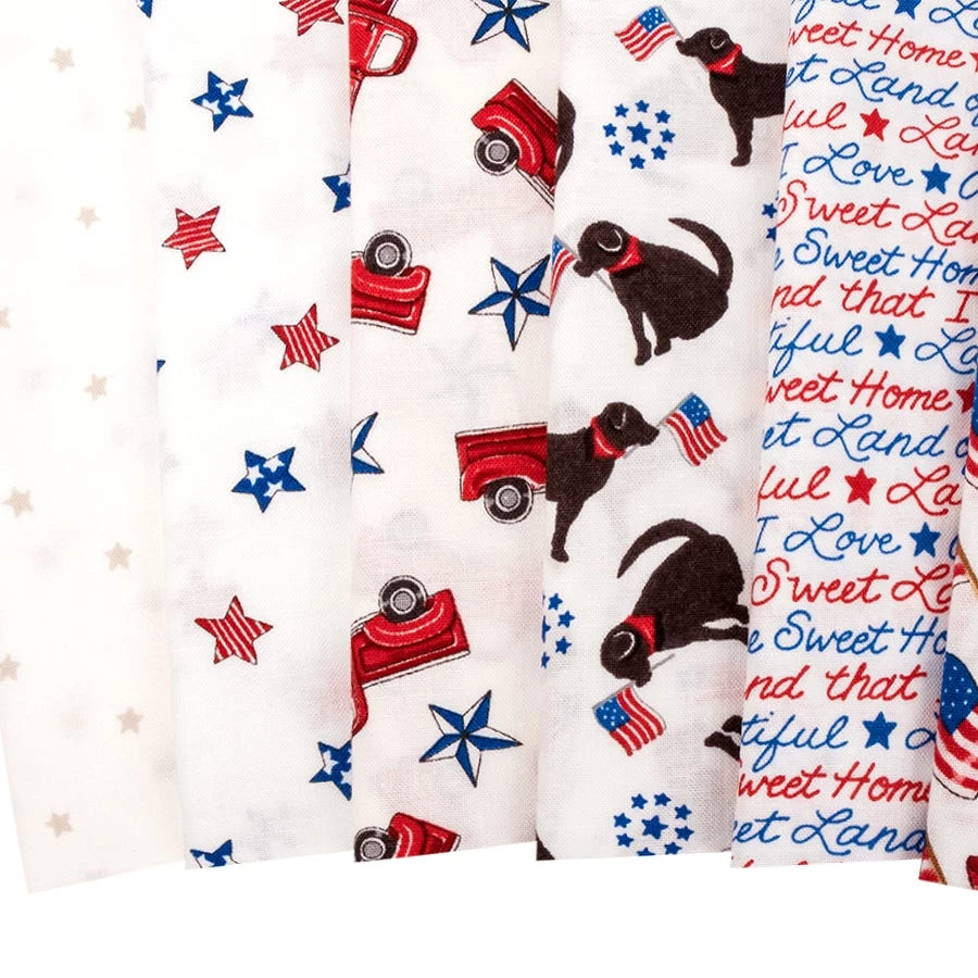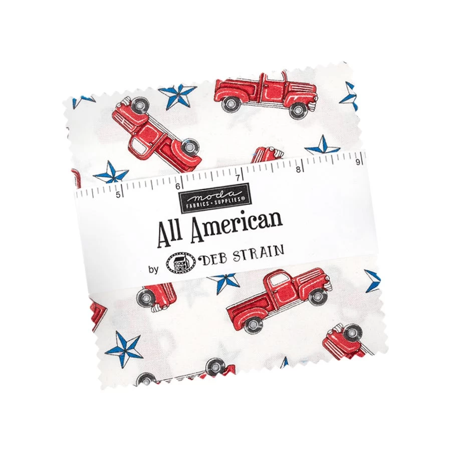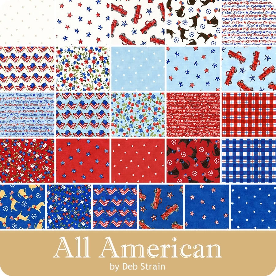 You’d be hard-pressed to find anything more patriotic than pickups, plaids and pups! Designer Deb Strain brings you just that with All American, alongside stars, text, florals and flags. Pair these prints with coordinating Bella Solids from Moda Fabrics for some timeless projects!