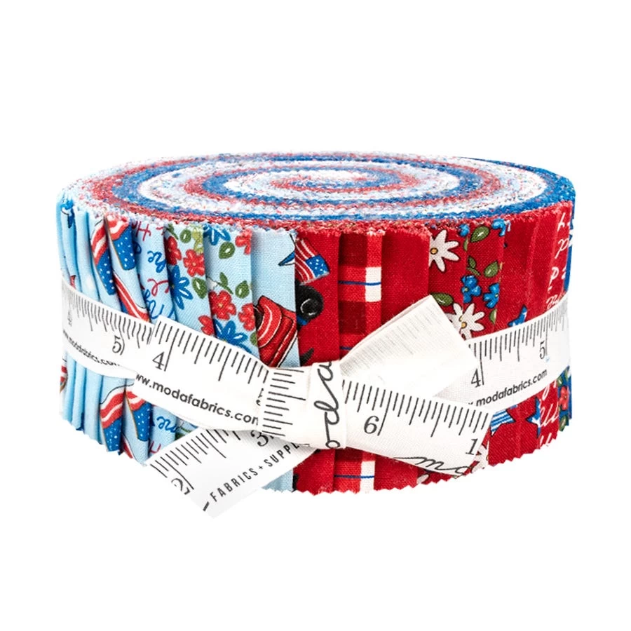 You’d be hard-pressed to find anything more patriotic than pickups, plaids and pups! Designer Deb Strain brings you just that with All American, alongside stars, text, florals and flags. Pair these prints with coordinating Bella Solids from Moda Fabrics for some timeless projects!