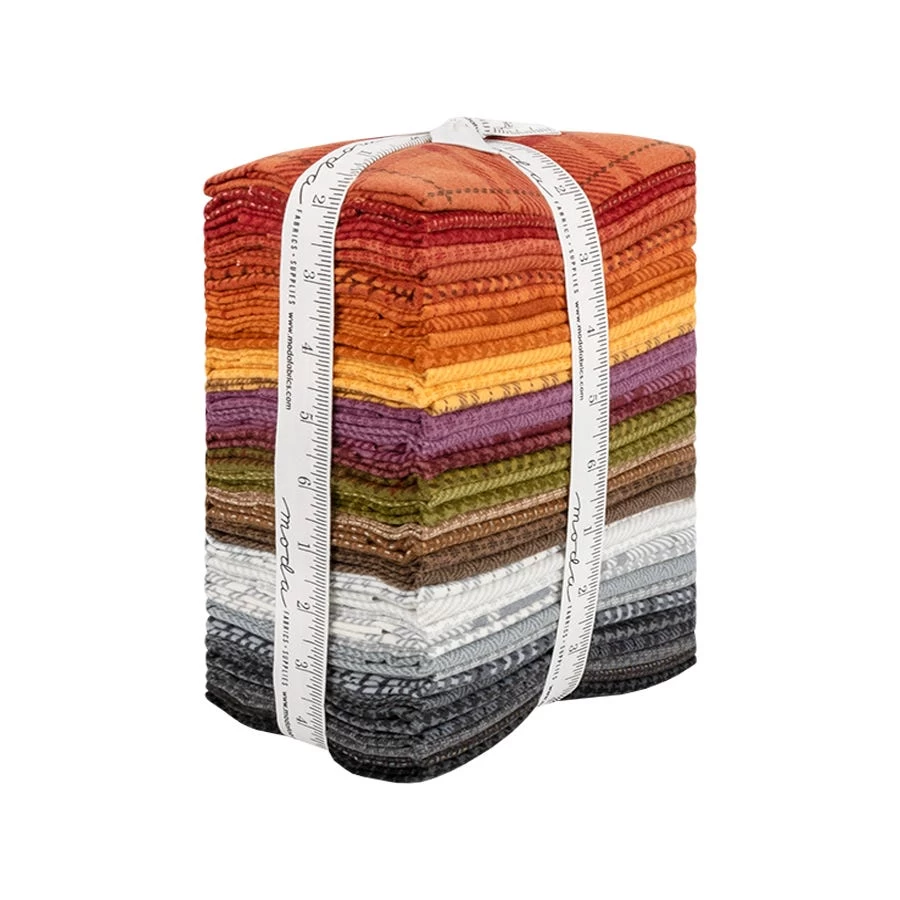 Good flannels are few and far between, but leave it to Primitive Gatherings to construct an entire collection of must-haves from the ground up! Autumn Gatherings Flannels is packed to the brim with plaid, houndstooth and so many more classic geometric patterns. Pair these prints with corresponding Bella Solids from Moda Fabrics for some elegant projects!