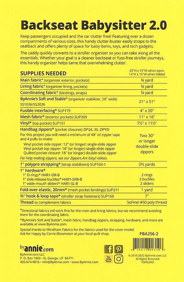 Backseat Babysitter 2.0 Sewing PatternByAnnie #PBA-256-2