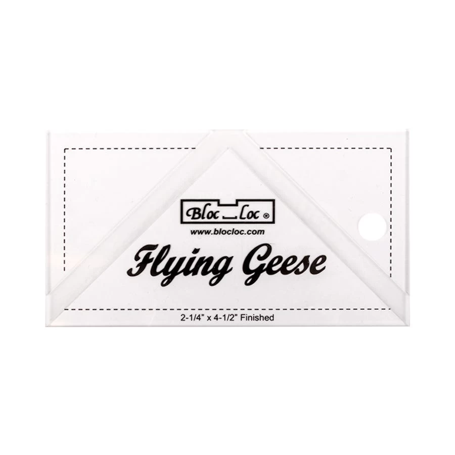 Flying Geese Square Up Ruler from Bloc_Loc eliminates most, if not all of your Flying Geese errors, quickly and easily. The patent pending channel locks onto both seam allowances and slides to square up your Flying Geese. It works on all Flying Geese block methods, so you will never take the top off a Goose again. This ruler makes a finished 2.25″ x 4.5″ flying geese block and includes easy to follow instructions.