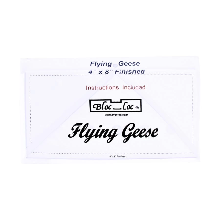 Ruler size: 4" x 8"The Flying Geese Square Up Ruler from Bloc_Loc eliminates most, if not all of your Flying Geese errors, quickly and easily. The patent pending channel locks onto both seam allowances and slides to square up your Flying Geese. Works on all Flying Geese block methods. You will never take the top off a Goose again. Includes easy to follow instructions.