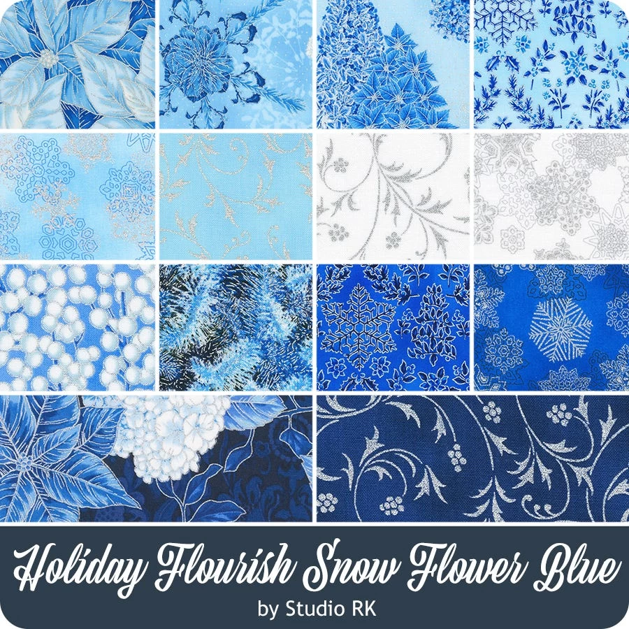 Blue Colorstory Holiday Flourish Snow Flower Charm PackStudio RK For Robert Kaufman Fabrics