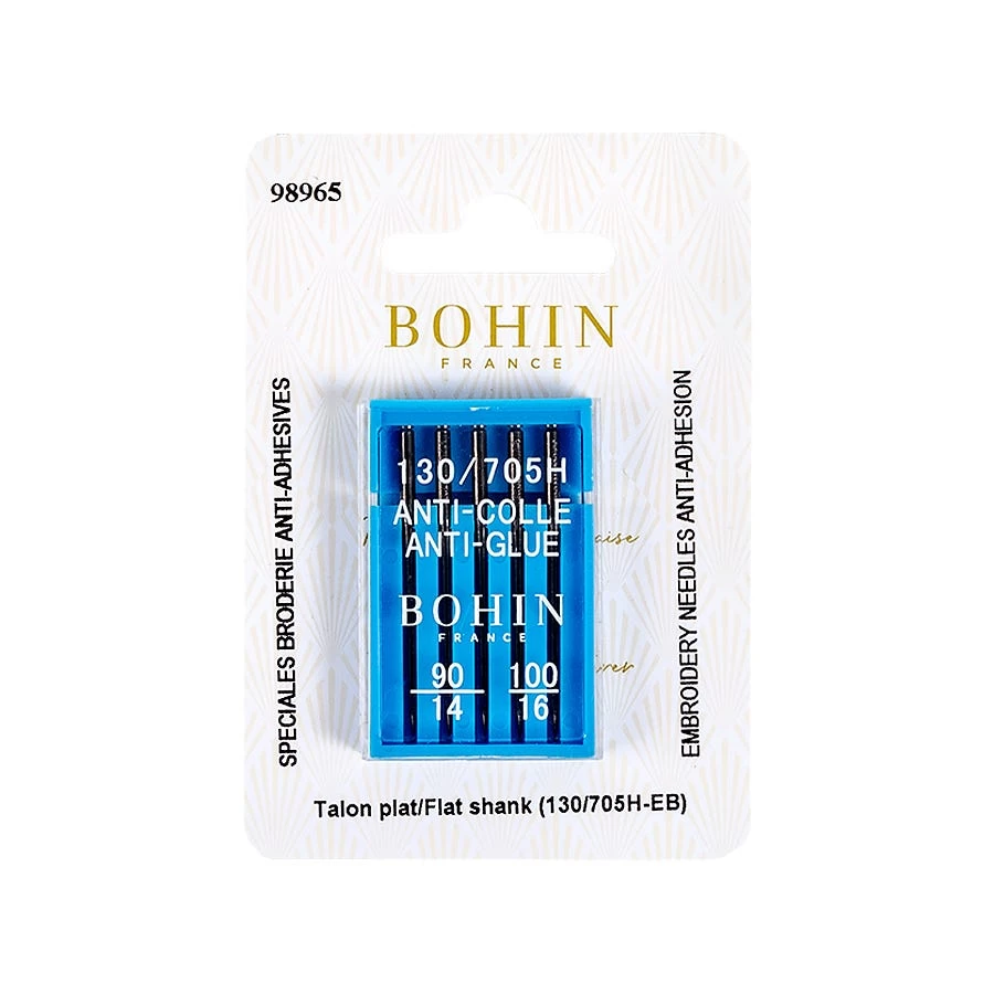 Bohin Anti-Glue Needles feature a special embroidery point and flat shank for accurate needle placement as well as a special anti-adhesion coating that allows them to glide through adhesive sprays, textile glues and more. Includes five machine needles.