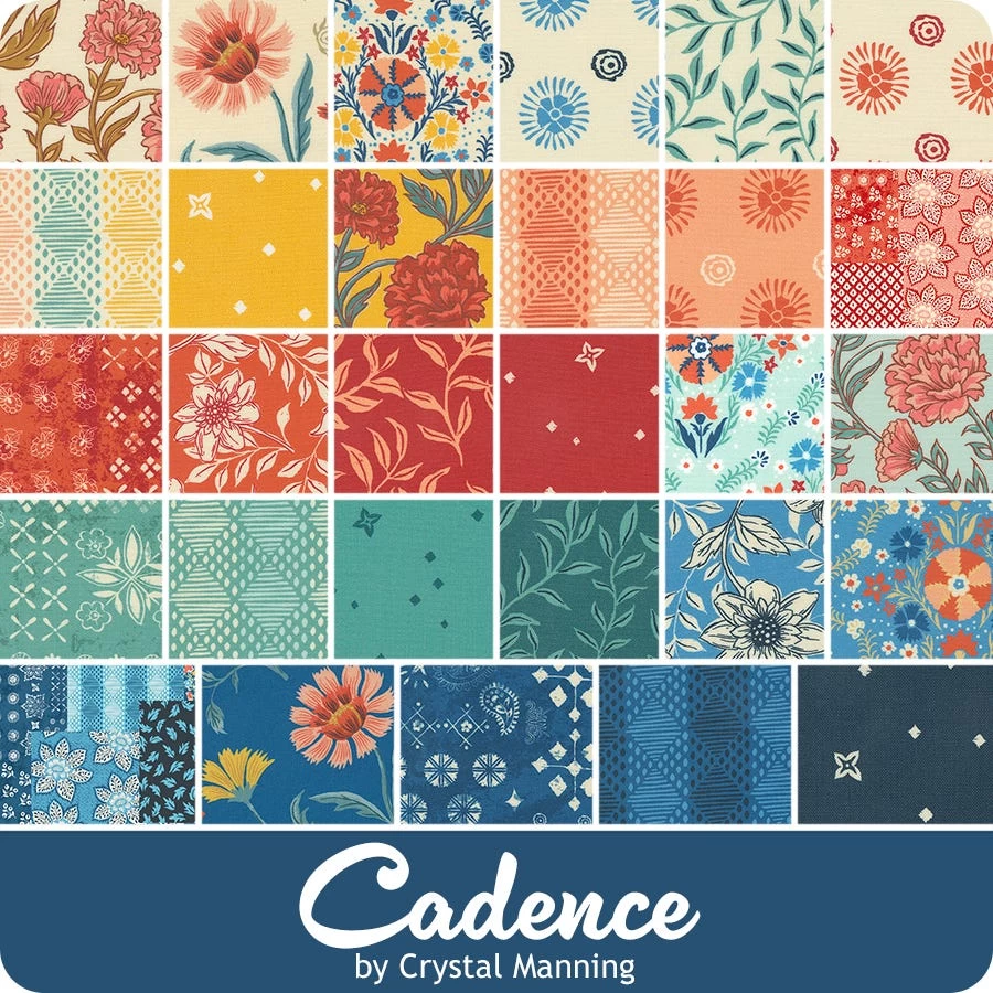 Cadence Jelly Roll includes 40 2.5" x 42" strips of fabric and includes duplicates of some prints. <br/><br/> Price will be $44.98. <br/><br/> Expected ship date of October 2023. <br><br> Have you ever wanted to see what music would look like? Then look no further than this marvelous collection by <a tabindex="0" href="https://www.fatquartershop.com/crystal-manning">Crystal Manning</a>. <a href="https://www.fatquartershop.com/moda-fabrics/cadence-crystal-manning-moda-fabrics">Cadence</a> portrays a happy and joyous feeling as if you’re in a musical, from the swaying <a tabindex="0" href="https://www.fatquartershop.com/floral-fabric">florals</a> to the dancing foliage this collection can tell a great story. Pair these prints with the coordinating <a tabindex="0" title="Bella Cottons Solids" href="https://www.fatquartershop.com/moda-fabrics/bella-solids-moda-fabrics-quilting-fabrics">Bella Cottons Solids</a> from <a tabindex="0" title="Moda Fabrics" href="https://www.fatquartershop.com/moda-fabrics">Moda Fabrics</a> for some fabulous projects!