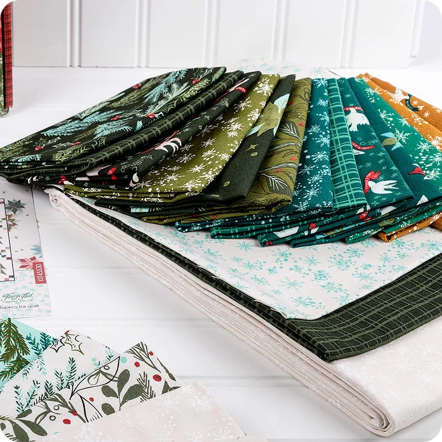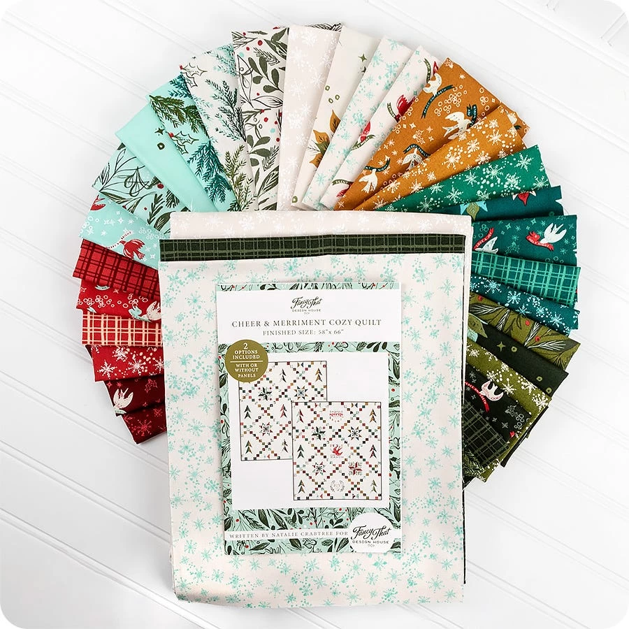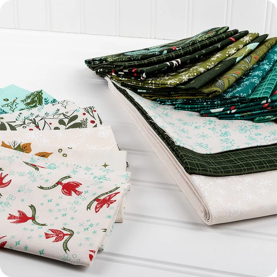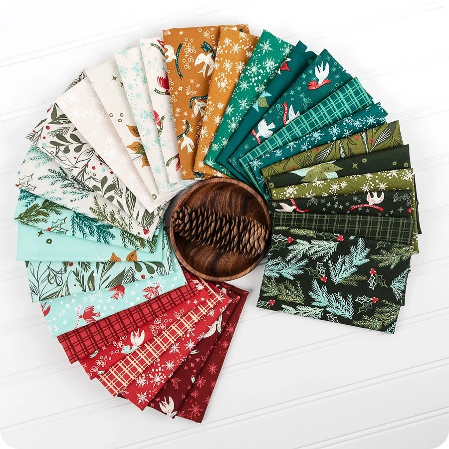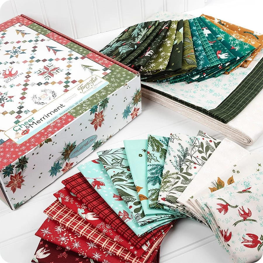 Fancy That Design House gets ready for the holidays with Cheer and Merriment! This elegantly colored collection features poinsettias, mistletoe, turtle doves, snowflakes and a unique grid check design that makes it a sure favorite this Christmas season. Pair these prints with corresponding Bella Solids from Moda Fabrics for some beautiful projects!