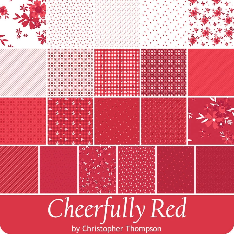 Cheerfully Red 5" Stacker includes 42 5" squares and includes duplicates of some prints <p> </p> <p id="LTNLJHC">Brighten up your day with this collection from <a tabindex="0" href="https://www.fatquartershop.com/christopher-thompson-riley-blake">Christopher Thompson</a>. <a href="https://www.fatquartershop.com/riley-blake-fabric/cheerfully-red-christopher-thompson-riley-blake-designs">Cheerfully Red</a> has an array of different shades of reds decorated with <a tabindex="0" href="https://www.fatquartershop.com/floral-fabric">florals</a>, <a tabindex="0" href="https://www.fatquartershop.com/geometric-fabric">dots and plaids</a>. Pair these prints with the corresponding <a tabindex="0" title="Confetti Cottons Solids" href="https://www.fatquartershop.com/riley-blake-fabric/confetti-cottons-solids-riley-blake-designs">Confetti Cottons Solids</a> from <a tabindex="0" title="Riley Blake Designs" href="https://www.fatquartershop.com/riley-blake-fabric">Riley Blake Designs</a> to create some joyful projects!</p>