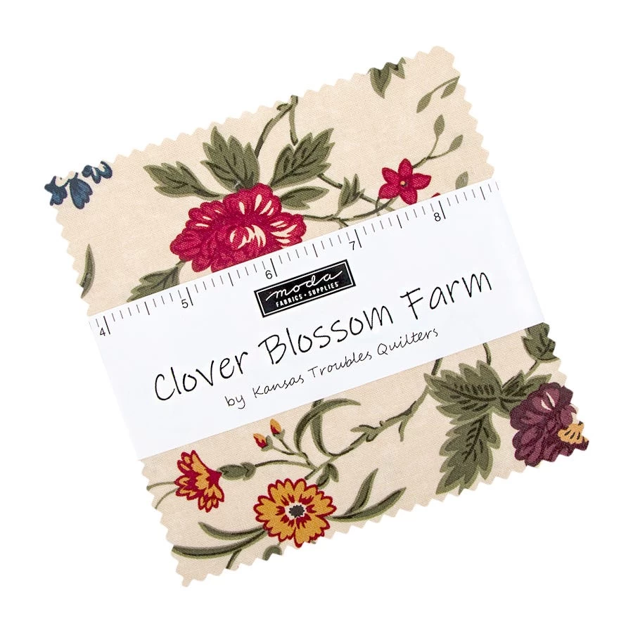 Clover Blossom Farm Charm Pack includes 42 5" squares <p> </p> <p id="X6R9CY5">With the inspiration of nature, <a tabindex="0" href="https://www.fatquartershop.com/kansas-troubles-fabric-quilters-fabrics">Kansas Troubles Quilters</a> has created the <a href="https://www.fatquartershop.com/moda-fabrics/clover-blossom-farm-kansas-troubles-quilters-moda-fabrics">Clover Blossom Farm</a> collection. With beautiful earthy tones and <a tabindex="0" href="https://www.fatquartershop.com/traditional-quilting-fabrics">traditional</a> designs, this collection will have you wanting to take a stroll through a field of blossoms. Pair these prints with the coordinating <a tabindex="0" title="Bella Cottons Solids" href="https://www.fatquartershop.com/moda-fabrics/bella-solids-moda-fabrics-quilting-fabrics">Bella Cottons Solids</a> from <a tabindex="0" title="Moda Fabrics" href="https://www.fatquartershop.com/moda-fabrics">Moda Fabrics</a> for some gorgeous projects!</p>