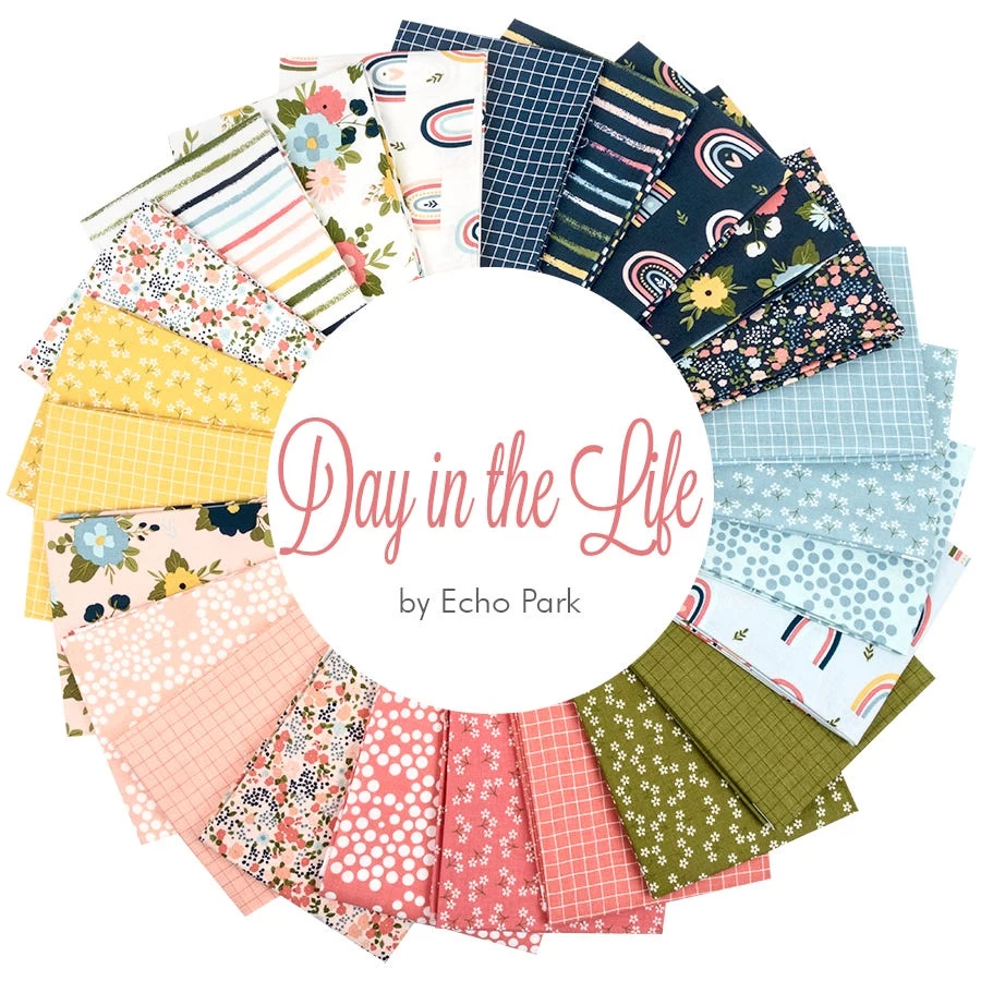 Day in the Life Fat Quarter Bundle includes 24 fat quarters <p> </p> <p>Live life with a mindset that is as bright and beautiful as this collection by <a tabindex="0" href="https://www.fatquartershop.com/echo-park-andover-fabrics">Echo Park</a>. <a href="https://www.fatquartershop.com/riley-blake-fabric/day-in-the-life-echo-park-riley-blake-designs">Day in the Life</a> features lovely bright hues paired with flourishing <a tabindex="0" href="https://www.fatquartershop.com/floral-fabric">florals</a> and wonderful dots and strips. Pair these prints with the corresponding <a tabindex="0" title="Confetti Cottons Solids" href="https://www.fatquartershop.com/riley-blake-fabric/confetti-cottons-solids-riley-blake-designs">Confetti Cottons Solids</a> from <a tabindex="0" title="Riley Blake Designs" href="https://www.fatquartershop.com/riley-blake-fabric">Riley Blake Designs</a> to create some wonderful projects!</p>