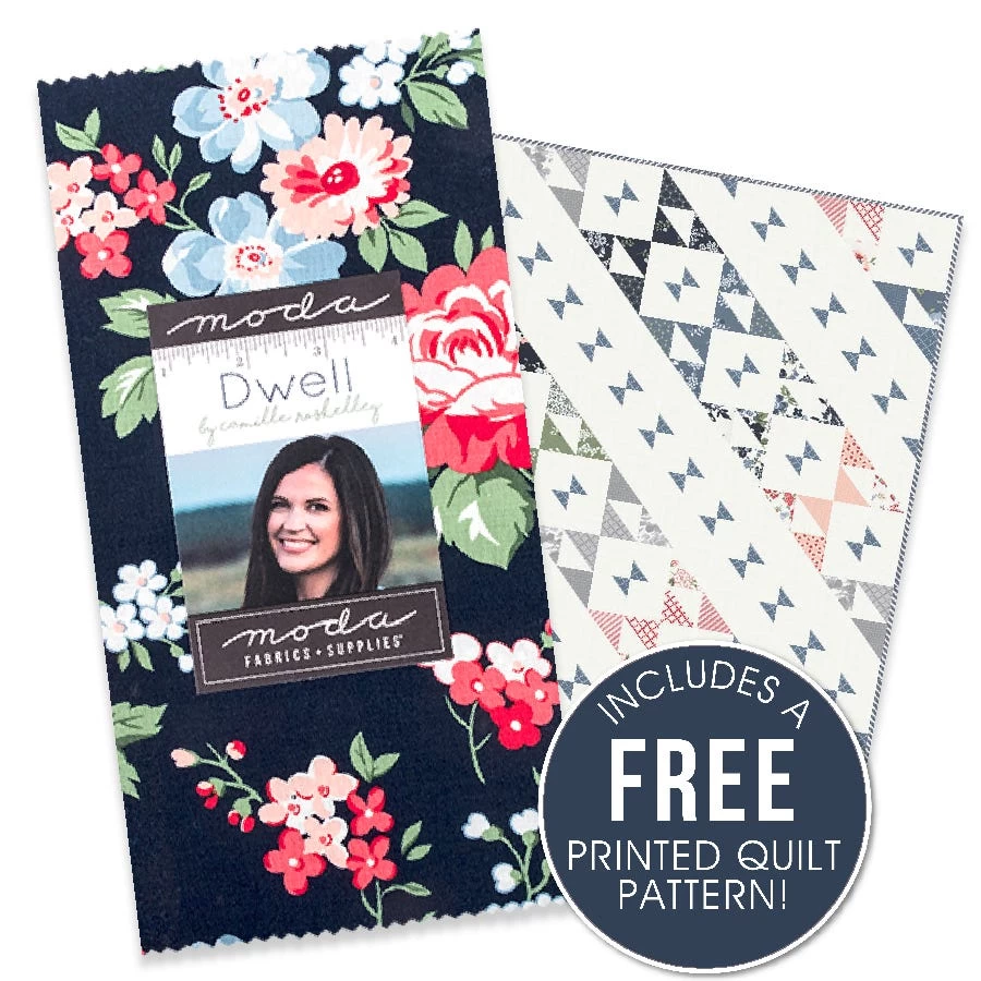 Dwell Jolly Bar includes 42 5" x 10" cuts of fabric and includes duplicates of some prints. <br><br> Includes a free pattern to make the 72.5" x 72.5" quilt. <br><br> Fabric requirements for one Painted Ladies Quilt Pattern:<BR><ul> <li>One Dwell Jolly Bar – SKU# 55270JB</li> <li>4.5 yards background – SKU# 55276-32</li> <li>0.75 yards accent – SKU# 55272-15</li> <li>0.75 yards binding – SKU# 55274-31</li> <li>4.625 yards backing – SKU# 55271-11</li> </ul> <p> </p> <p>Find your way back home with Dwell by <a tabindex="0" title="Camille Roskelley" href="https://www.fatquartershop.com/camille-roskelley-moda-fabrics">Camille Roskelley</a> of Bonnie & Camille. The beautiful <a tabindex="0" href="https://www.fatquartershop.com/floral-fabric">florals</a> paired with charming coordinate <a tabindex="0" href="https://www.fatquartershop.com/stripe-quilting-fabrics">stripes</a> and <a tabindex="0" href="https://www.fatquartershop.com/dots-and-spots-quilt-fabric">dots</a> transport you to your favorite cozy armchair. Pair these prints with corresponding <a tabindex="0" href="https://www.fatquartershop.com/moda-fabrics/bella-solids-moda-fabrics-quilting-fabrics">Bella Solids</a> from <a tabindex="0" href="https://www.fatquartershop.com/moda-fabrics">Moda Fabrics</a> for some comforting projects.</p>