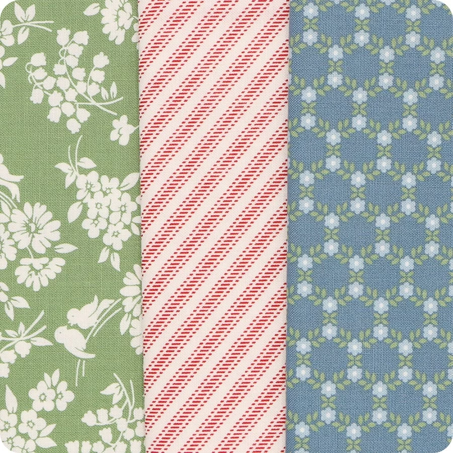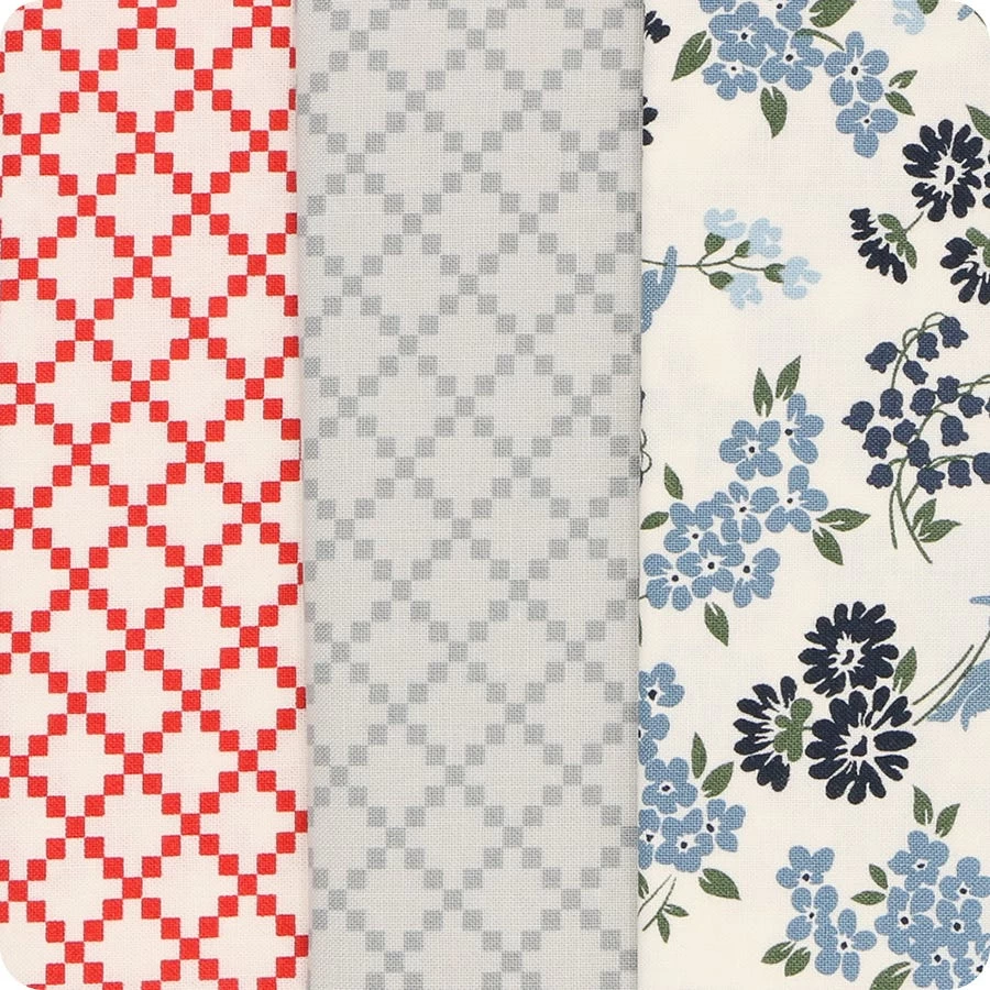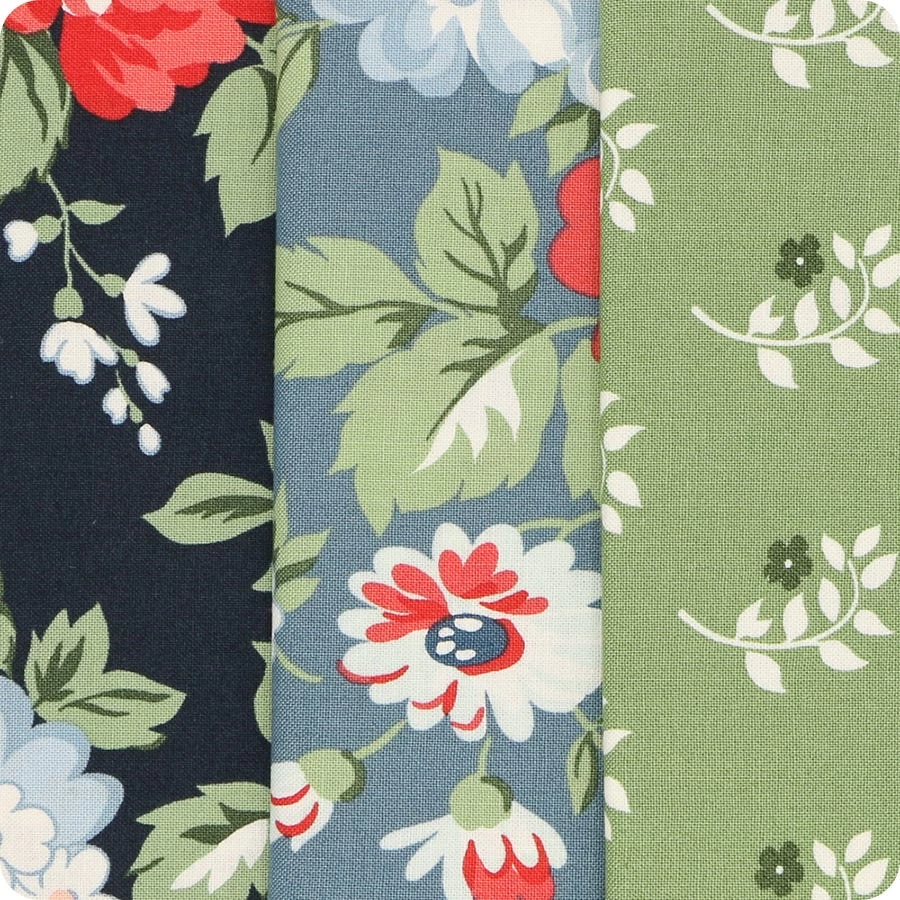 Find your way back home with Dwell by Camille Roskelley of Bonnie & Camille. The beautiful florals paired with charming coordinate stripes and dots transport you to your favorite cozy armchair. Pair these prints with corresponding Bella Solids from Moda Fabrics for some comforting projects.