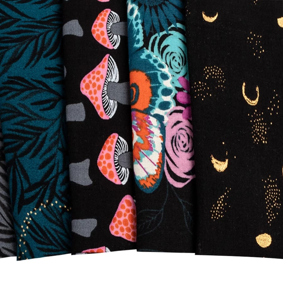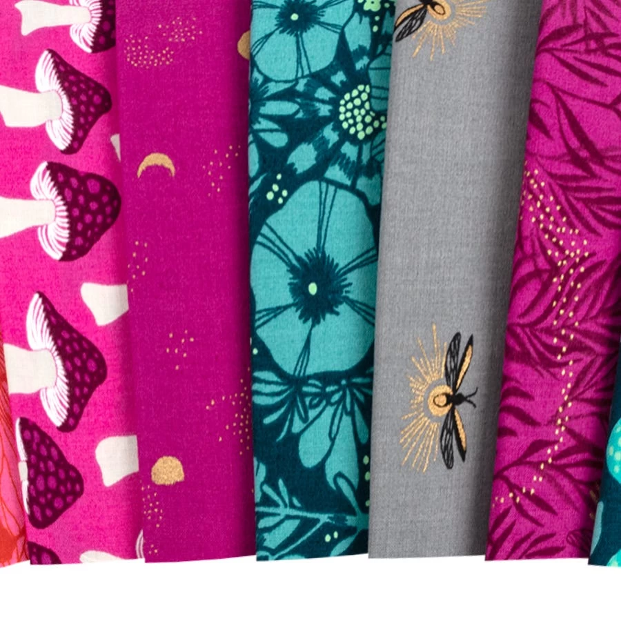 Few designers can artistically capture the moving parts of night life like Sarah Watts. In this collection you can find wildlife, flowers blooming under moondbeams and foliage all in vibrant and electric color combinations. Firefly is a fantasy of color and life and is sure to wow in your next project! Pair these prints with coordinating Ruby Star Basics from Ruby Star Society for some dreamy designs!