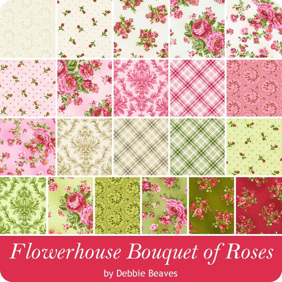 Flowerhouse Bouquet of Roses Charm Pack includes 42 5" squares and includes duplicates of some prints <p> </p> <p id="DUWCM0O">You can just smell the roses with this collection from <a tabindex="0" href="https://www.fatquartershop.com/debbie-beaves-robert-kaufman-fabrics">Debbie Beaves</a>. <a href="https://www.fatquartershop.com/robert-kaufman/flowerhouse-bouquet-of-roses-debbie-beaves-robert-kaufman-fabrics">Flowerhouse Bouquet of Roses</a> is a charming collection full of blossoming <a tabindex="0" href="https://www.fatquartershop.com/floral-fabric">roses</a>, plaid, intricate designs, as well as vibrant colors like, pink, green and cream. Pair these prints with the corresponding <a tabindex="0" title="Kona Cotton Solids" href="https://www.fatquartershop.com/robert-kaufman/kona-cotton-solids">Kona Cotton Solids</a> from <a tabindex="0" title="Robert Kaufman Fabrics" href="https://www.fatquartershop.com/robert-kaufman">Robert Kaufman Fabrics</a> to create some marvelous projects!</p>