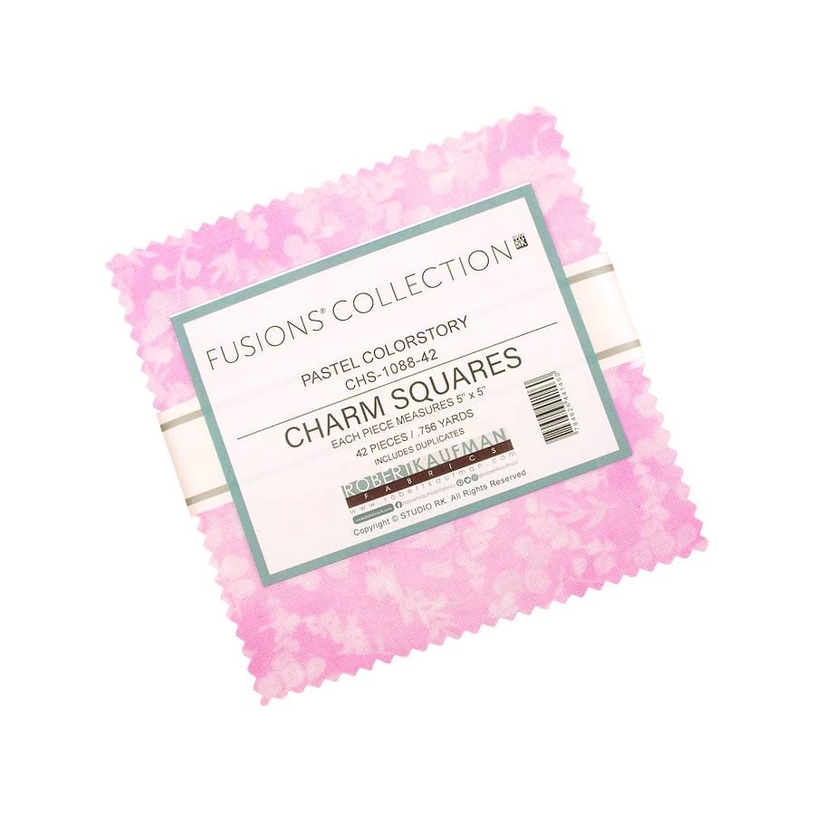 Fusions Collection Pastel Charm Pack includes 42 5" squares and includes duplicates of some prints