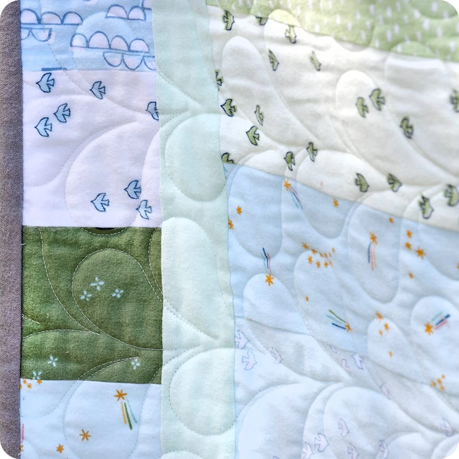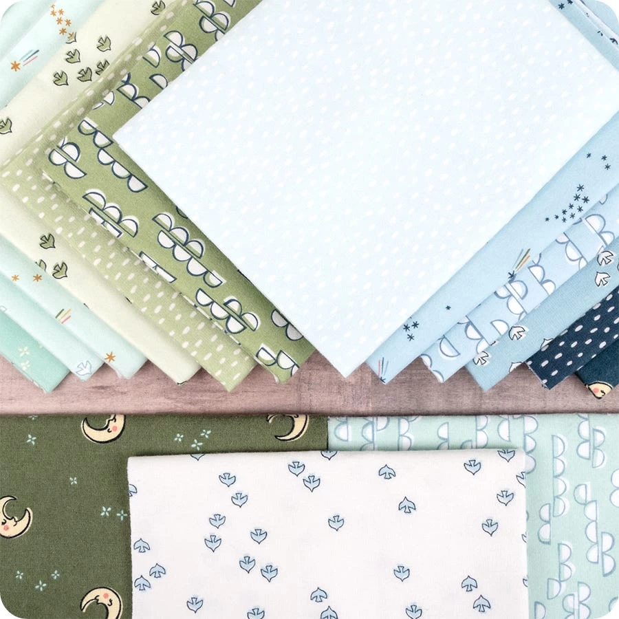 Twinkle, twinkle… one big star! Kit includes the Among the Stars Quilt Pattern by Elise Lea, Flannel Solids and Cozy Cotton Flannel – Over the Moon by Robert Kaufman Fabrics fabrics for the 48″ x 54″ quilt top and binding.