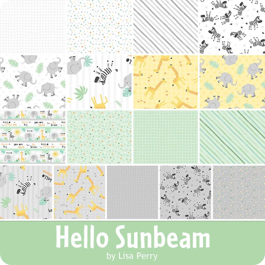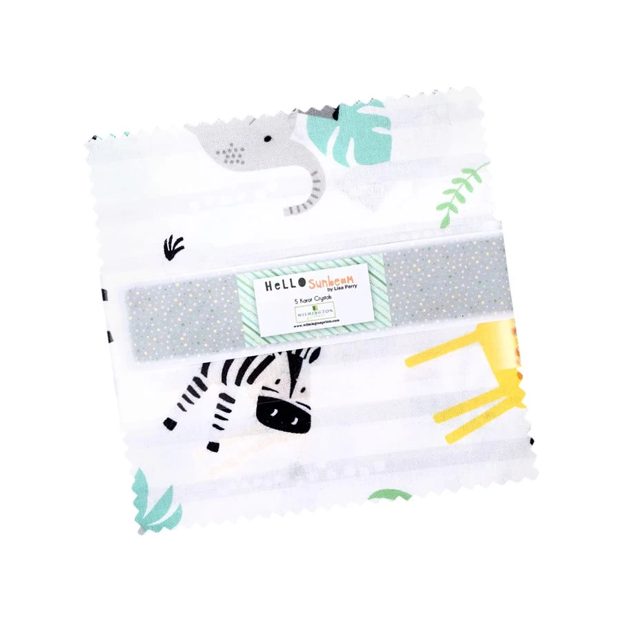 Hello Sunbeam 5 Karat Crystals includes 42 5" squares and includes duplicates of some prints <p> </p> <p>Let your<a tabindex="0" href="https://www.fatquartershop.com/baby-and-children-quilt-fabric"> little one’s</a> imagination come to life with this collection by designer <a tabindex="0" href="https://www.fatquartershop.com/lisa-perry-wilmington-prints">Lisa Perry</a>. <a tabindex="0" href="https://www.fatquartershop.com/wilmington-prints/hello-sunbeam-lisa-perry-wilmington-prints">Hello Sunbeam</a> is a lovely selection of cartoon like <a tabindex="0" href="https://www.fatquartershop.com/animal-quilt-fabrics">animals</a> paired with wonderful pastel yellows and greens. Pair these prints with the coordinating <a tabindex="0" href="https://www.fatquartershop.com/wilmington-prints/essentials-wilmington">Essentials</a>; from <a tabindex="0" title="Wilmington Essentials" href="https://www.fatquartershop.com/wilmington-prints">Wilmington Prints</a> for some inspiring projects!</p>