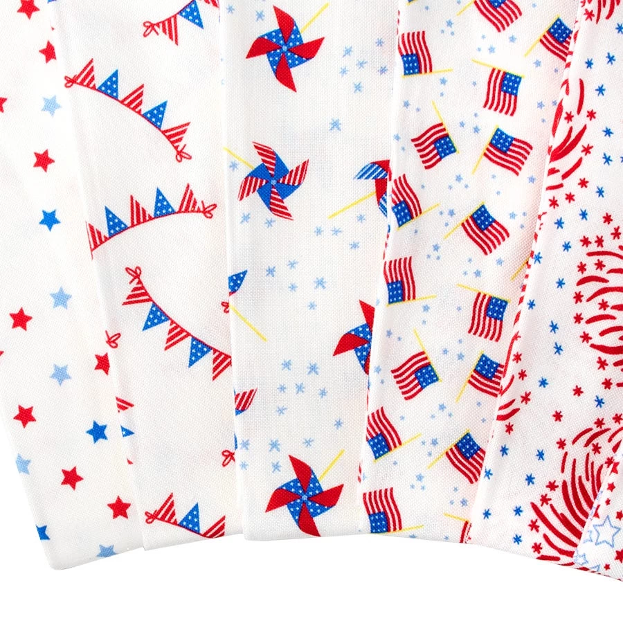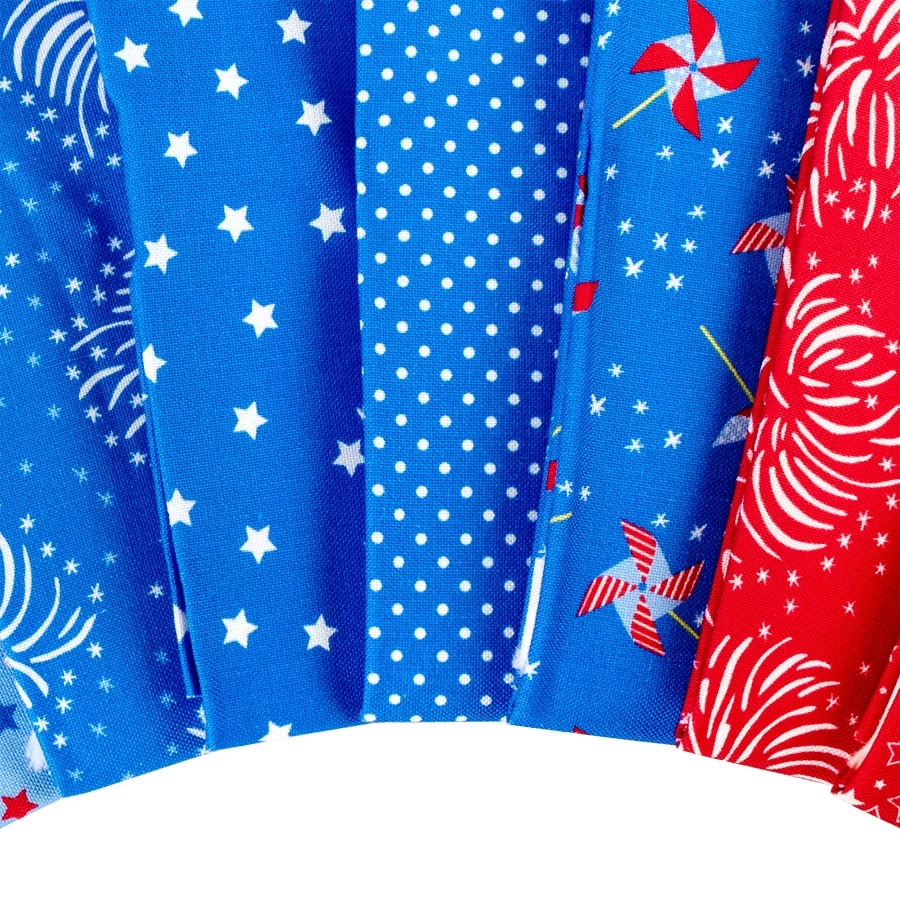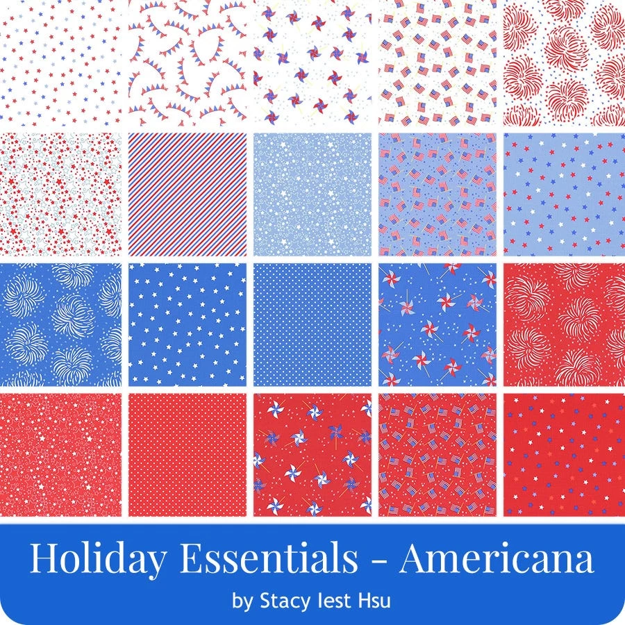 Dots and stripes, fireworks and flags, pinwheels and stars! Americana is a collection of bright Fourth of July essentials in red, white and blue for you from Stacy Iest Hsu and Moda Fabrics.