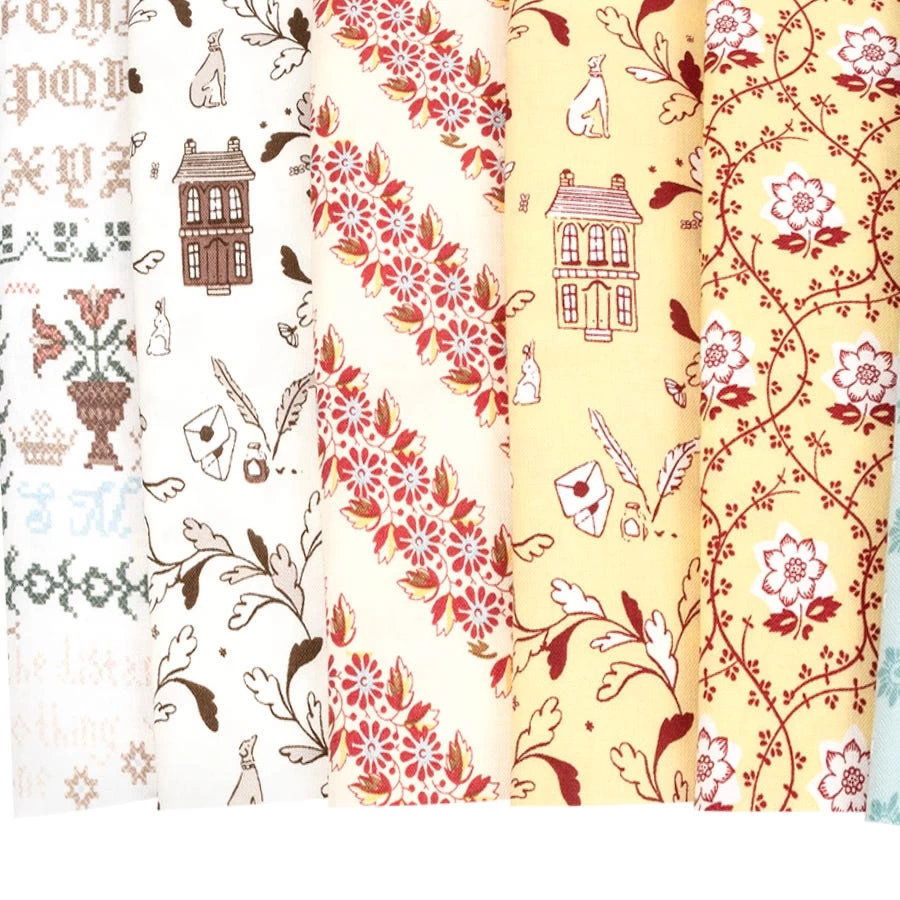Relive literary history with Jane Austen At Home, a faithful reproduction collection by Riley Blake Designs. Featuring sprigs of berries, bountiful flower baskets, sweet serenades and love letters, Jane Austen’s House has carefully reproduced a selection of 1800s prints from the original Jane Austen Quilt, as well as passages from her letters and handwritten music scores, in beautiful blues and browns, crisp cream and corals, terrific tan & taupe and a touch of rich red to inspire others to create their own masterpieces. Pair these prints with the corresponding Confetti Cottons Solids from Riley Blake Designs to create some timeless projects!