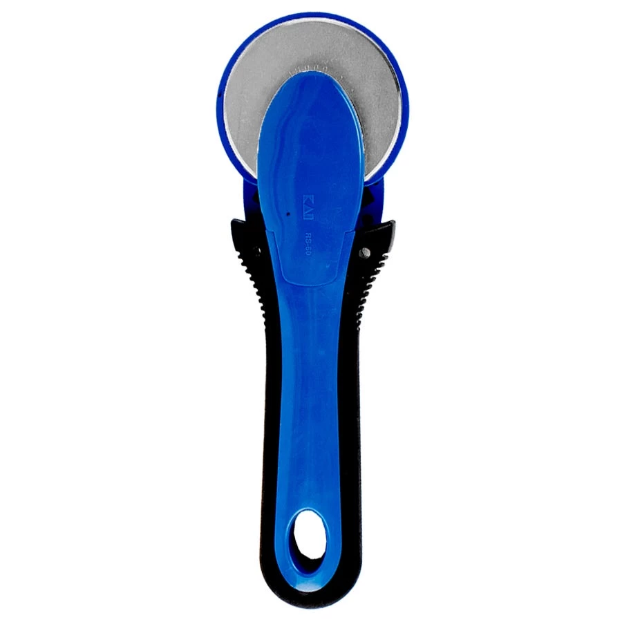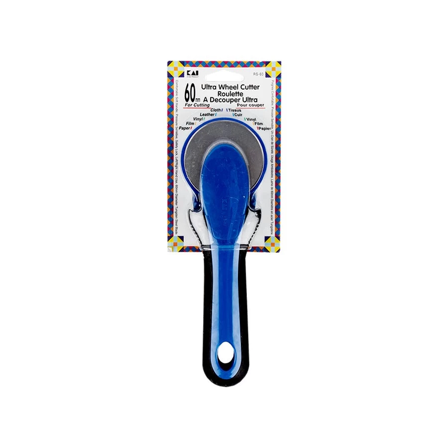 Kai 60mm Rotary Cutter is ideal for any quilter or sewist! It features a soft grip handle to reduce fatigue when cutting fabrics. It has a pressure-sensitive blade with safety lock feature. The universal grip is perfect for right- or left-handed users. The blade can be easily changed without having to loosen washers or springs.