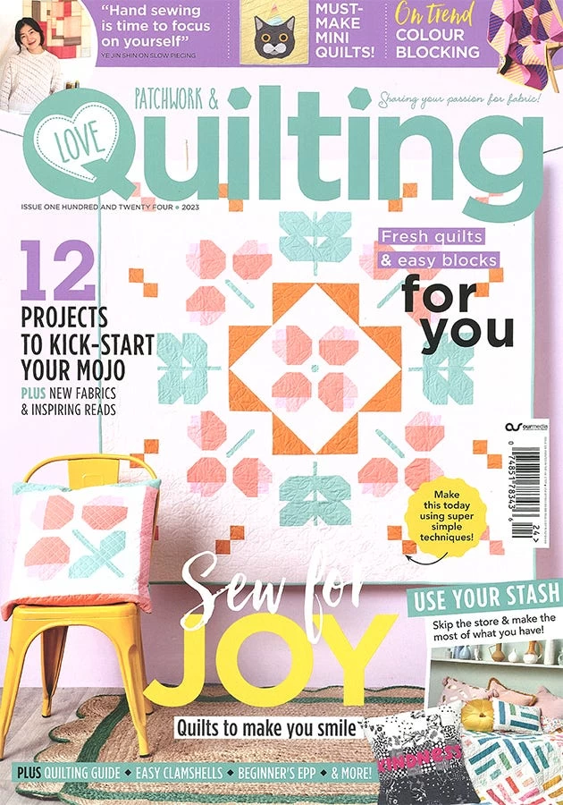 Love Patchwork & Quilting Issue 124 brings you 12 projects to spark joy. Use the included clamshell template to create a forest full of cute creatures, shop your stash to make marvelous modern quilts and put your scraps to use by stitching stunning pouches. Then dive into a technique focus on matchstick quilting, get to know Aneela Hoey and read three interviews with quilters to glean the benefits of slow sewing.