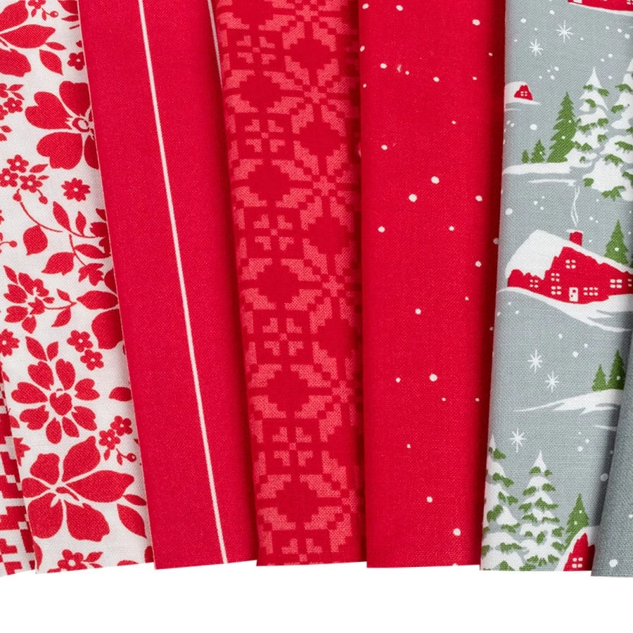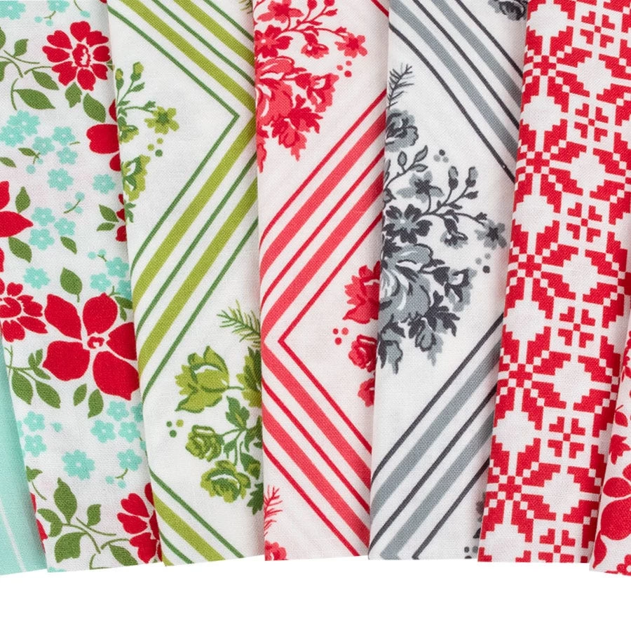 Just as the song says, have yourself a Merry Little Christmas with this collection from Bonnie and Camille! Poinsettias and other florals, abstract pine trees, stripes and a quaint, snow-coated village suspend a world of Christmas in these fabrics. Pair these prints with corresponding Bella Solids from Moda Fabrics for some festive projects!