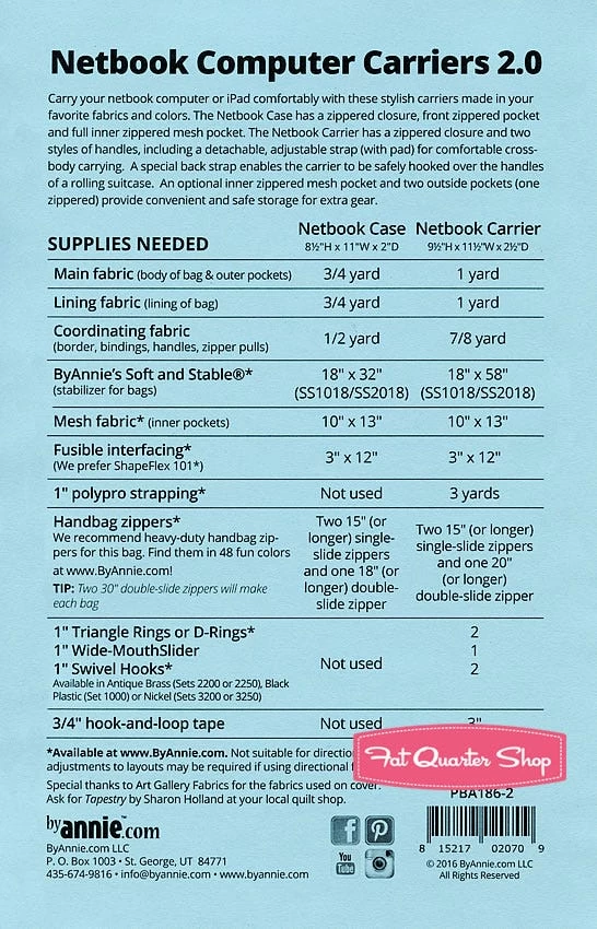 Netbook Computer Carriers 2.0 Sewing PatternByAnnie #PBA-186