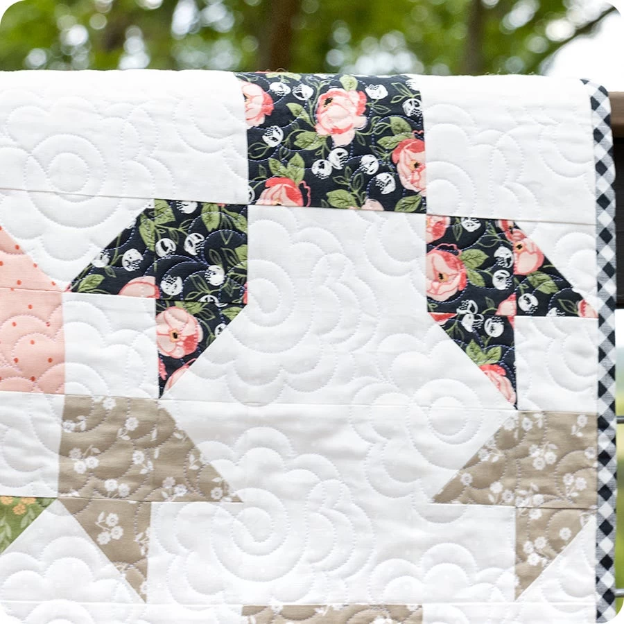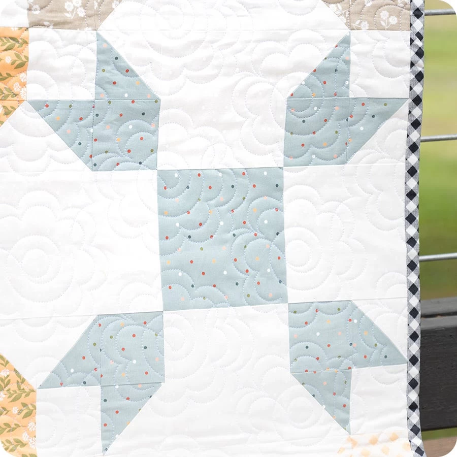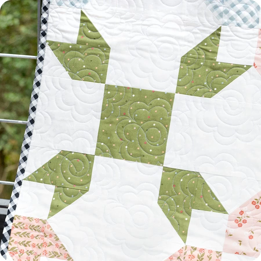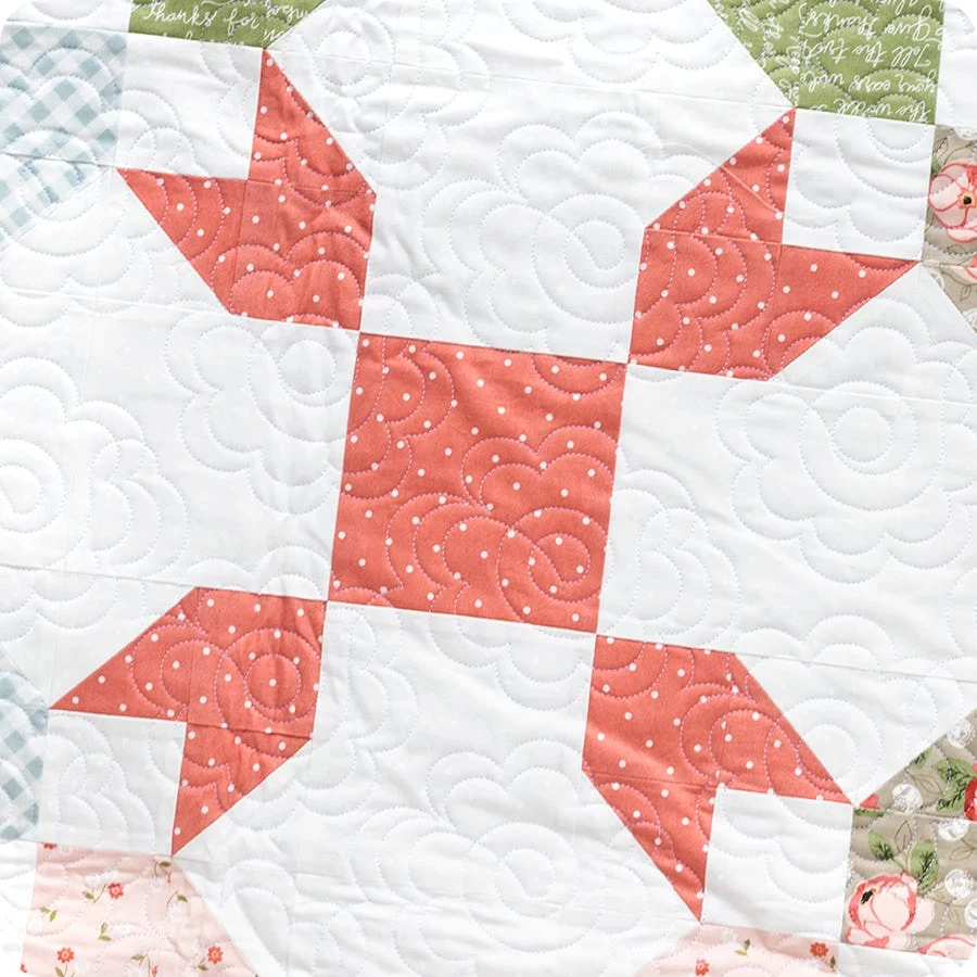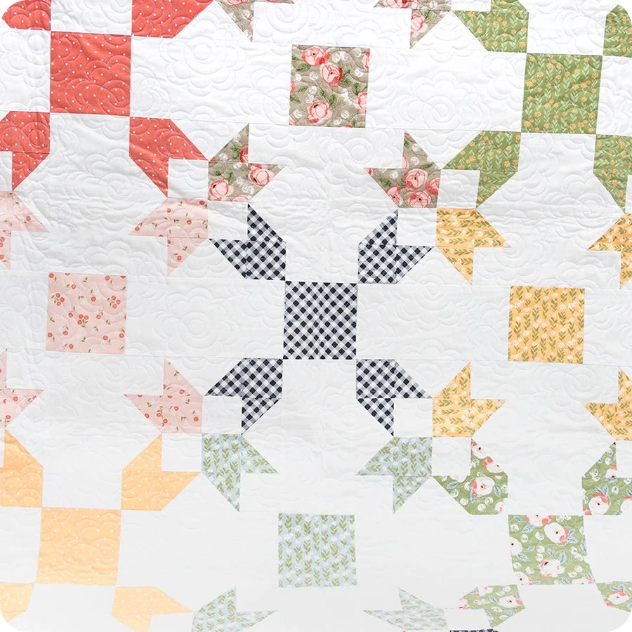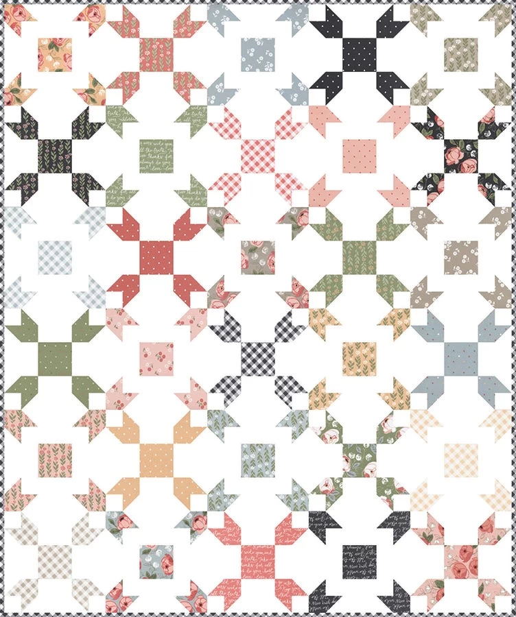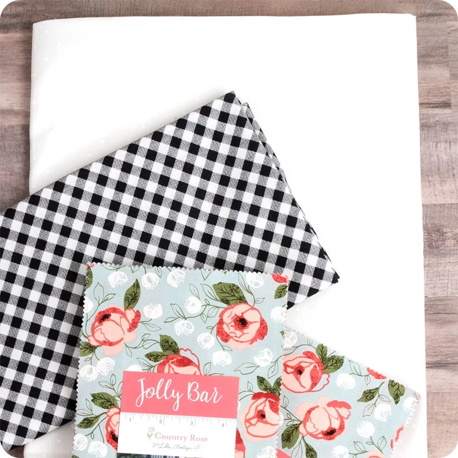 Here’s a cute quilt to cherish! Kit includes two Country Rose Jolly Bars and Country Rose by Lella Boutique fabrics for the 60.5″ x 72.5″ quilt top and binding.
