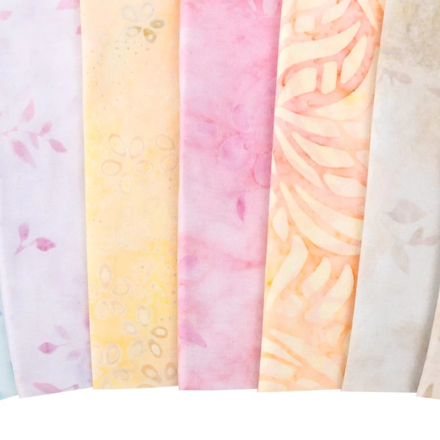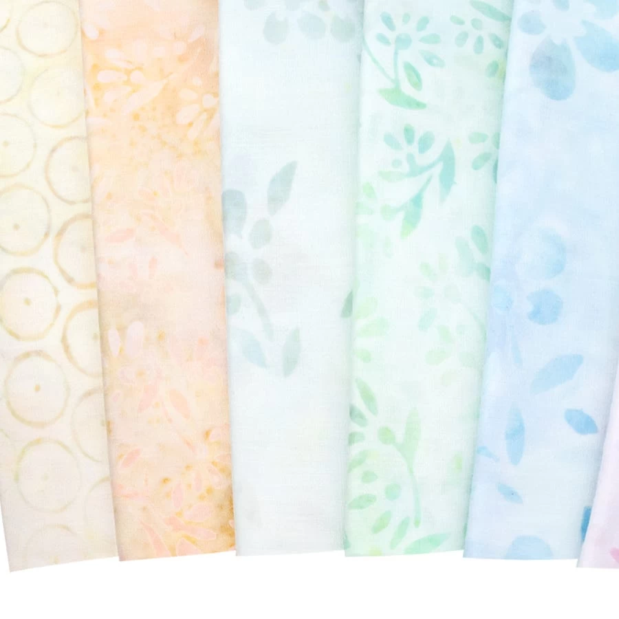 These hand dyed batiks from Lunn Studio curate a garden of pastels like cotton candy clouds! Pastel Petals is a gentle collection of batiks influenced by textures from nature and unique to the finish. Pair these prints with coordinating Kona Cotton Solids from Robert Kaufman Fabrics for some colorful projects!