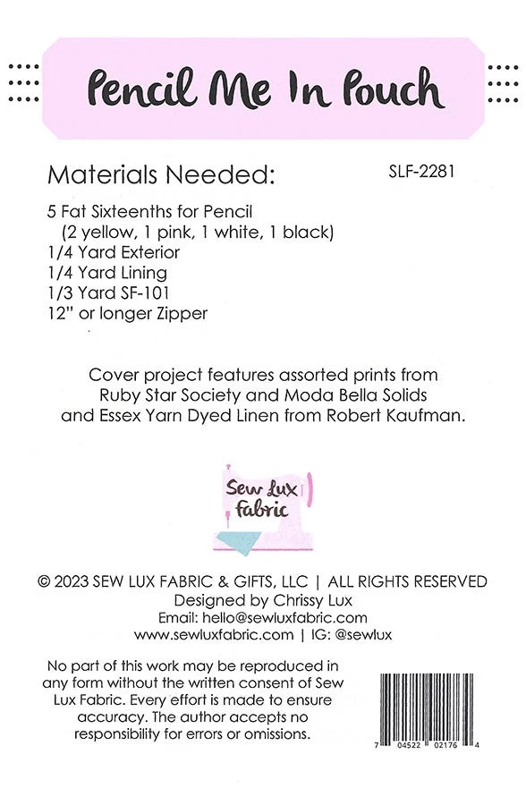 Pencil Me In Pouch Sewing PatternSew Lux Fabric #SLF-2281