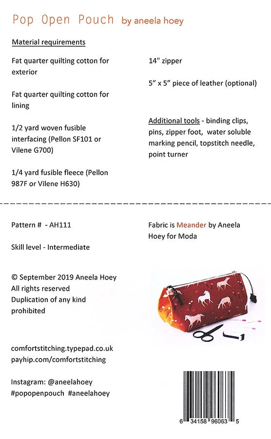Use Meander by Aneela Hoey for Moda Fabrics to create the ideal pouch for any bobbins, pens or other small items to take on the go.