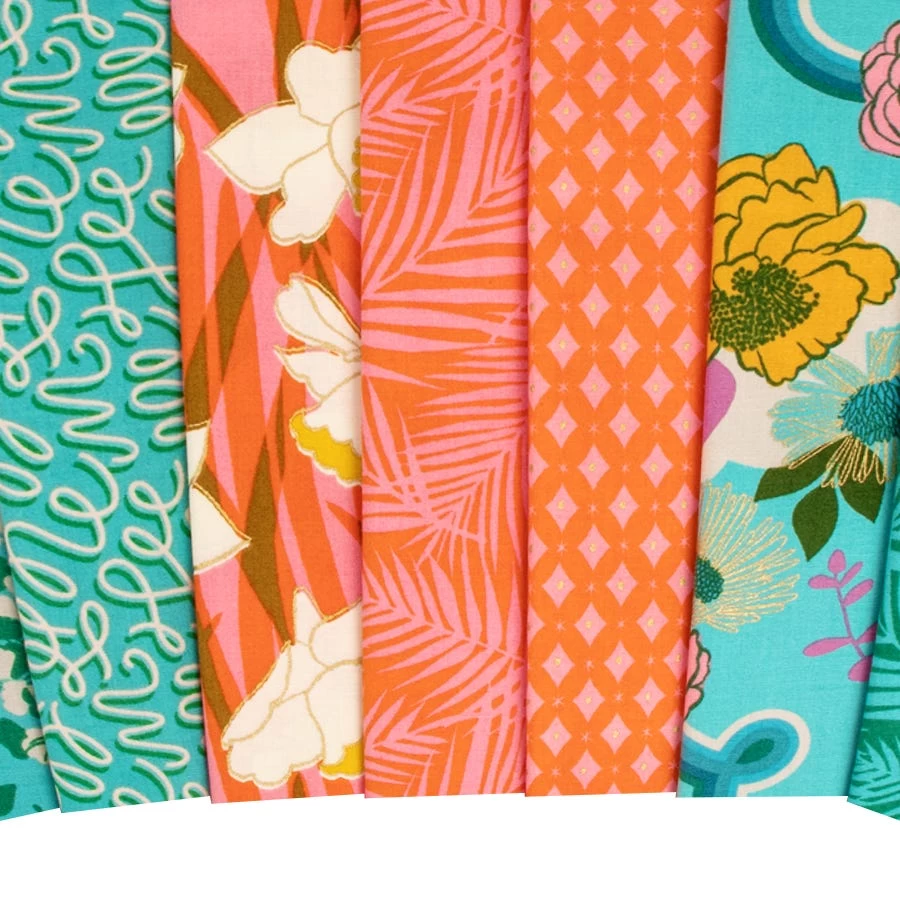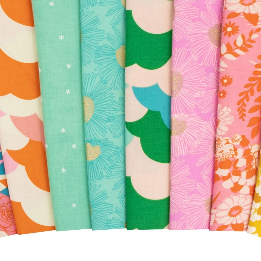 Tour a garden of color in Reverie! This collection by designer Melody Miller peaks in versatility with florals and foliage in selections that stretch the color wheel before your eyes. Her use of space goes almost unparalleled in these designs! Pair these prints with coordinating Ruby Star Basics from Ruby Star Society for some unique projects!