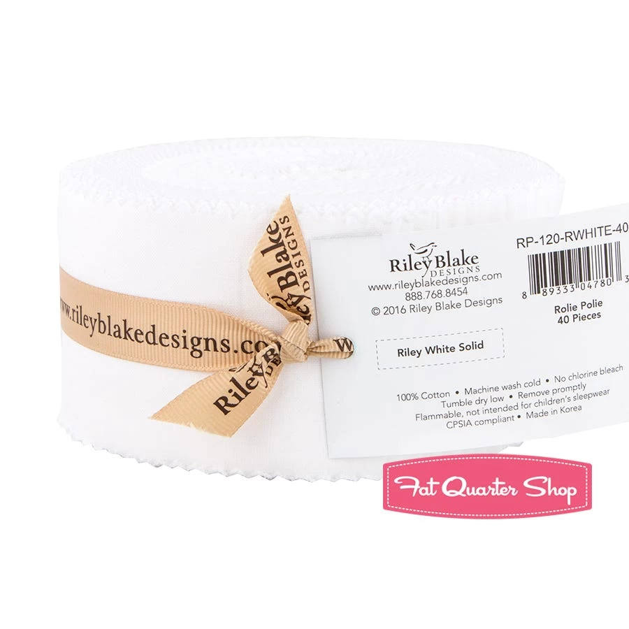 Riley White Confetti Cotton Solid 2.5" Rolie Polie includes 40 identical 2.5" x 42" strips of fabricSKU: C120-RILEYWHITE