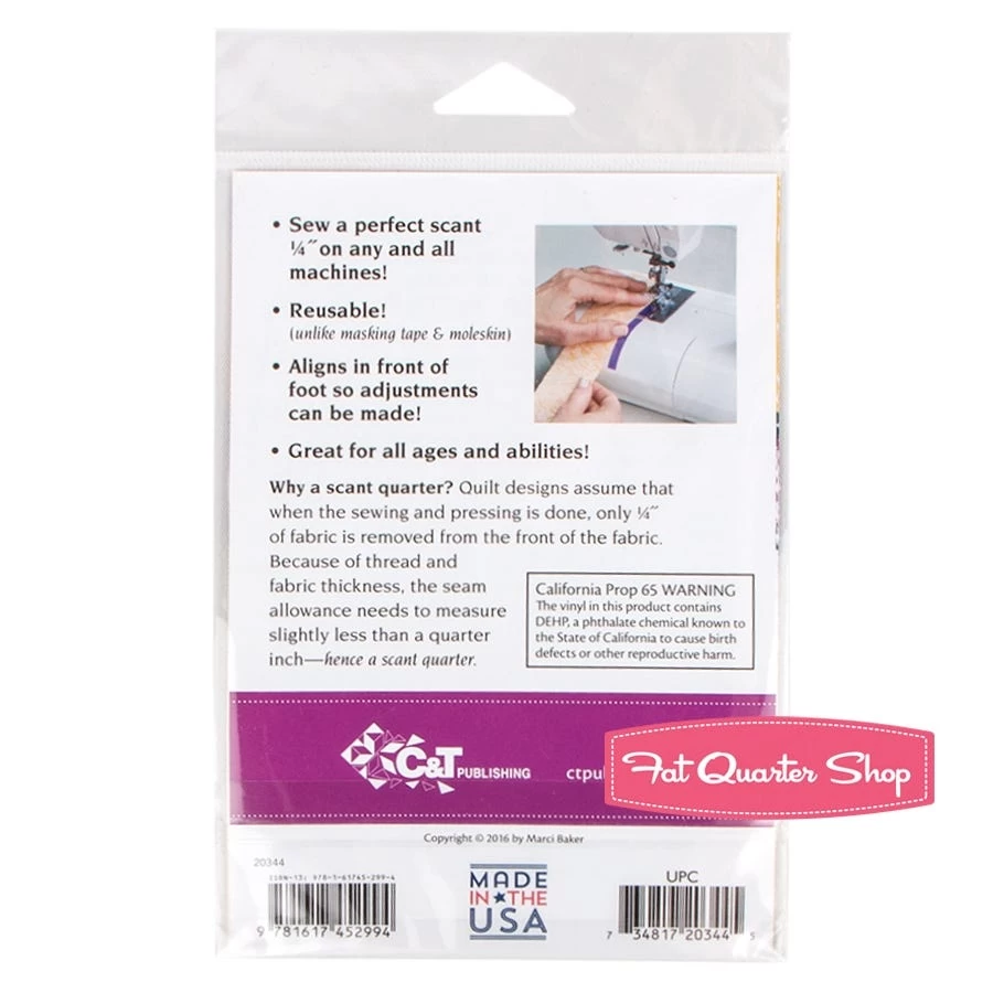 - Achieve a perfect scant 0.25″ seam on all machines