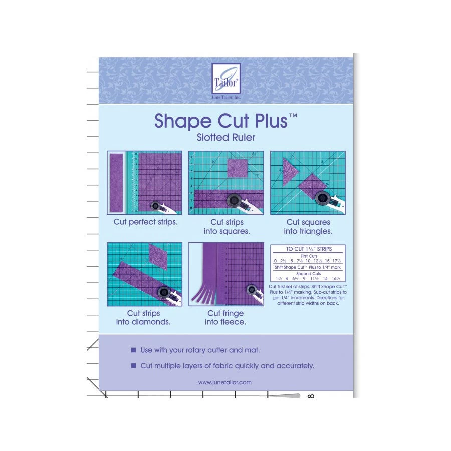 Shape Cut Plus 12″ x 18″ Ruler by June Tailor is a handy tool to make great and useable quilting shapes with your stash. Cut strips, squares, diamonds and other quilting shapes – plus, cut fringes into fleece. The 12″ x 18″ grid is slotted with rotary cutting lines and features 45-degree and 60-degree lines to help you cut squares into triangles with ease.