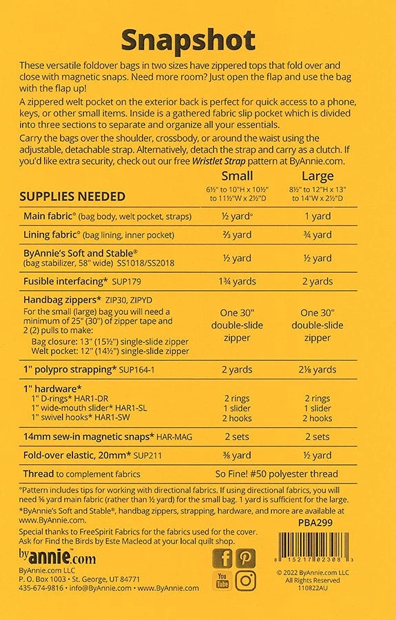 Snapshot Foldover Bags Sewing PatternByAnnie #PBA-299