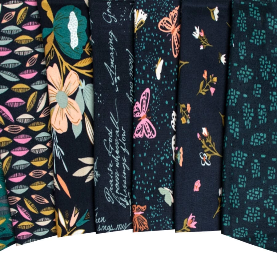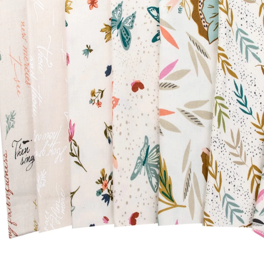 Songbook – A New Page is an outpouring of designer Stephanie Sliwinski’s love for nature, hymns and hymnals. This charming collection of prints blends butterflies, tossed flowers and sprigs of leaves in blue, ochre, cream, mustard and pink to complement the classic words of inspiration from the hymns Sliwinski is known for incorporating into her work.