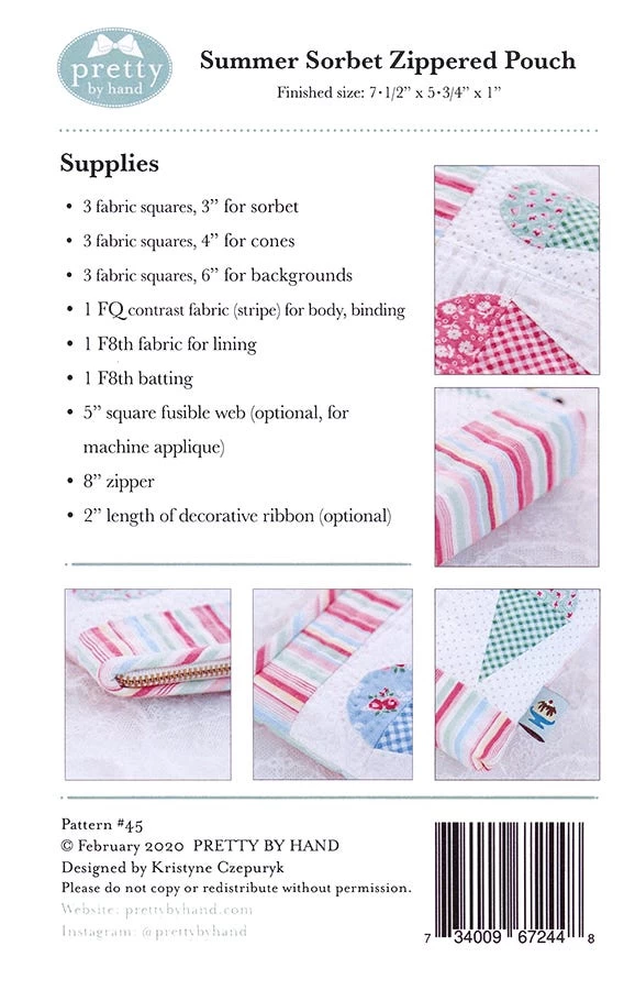 Summer Sorbet Zippered Pouch Sewing PatternPretty By Hand #PBH-45
