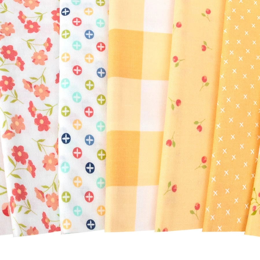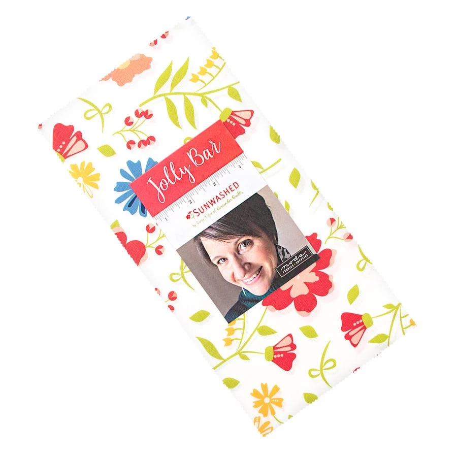 Sunwashed Jolly Bar includes 42 5" x 10" cuts of fabric and includes duplicates of some prints. <br><br>Includes a free pattern to make the 65.5" x 67.5" quilt. <br><br>Fabric requirements for Summer Picnic Jolly Bar Pattern:<BR><ul class="prod-desc-bullet-list"> <li>Two Sunwashed Jolly Bar – SKU# 29160JB</li> <li>2.125 yards background – SKU# 29166-31</li> <li>0.75 yards binding – SKU# 29166-21</li> <li>4.25 yards backing – SKU# 29160-20</li> </ul> <p id="OVQ4OPL">From the warm bright tones of yellow and red to the cool dusk-like hue of blues this collection from <a tabindex="0" href="https://www.fatquartershop.com/corey-yoder-little-miss-shabby-moda-fabrics">Corey Yoder</a> is one that you would be impressed by! Bring the summer season to your hands with <a tabindex="0" href="https://www.fatquartershop.com/moda-fabrics/sunwashed-corey-yoder-moda-fabrics">Sunwashed</a>, this collection offers you spectacular colors, patterns and stunning <a tabindex="0" href="https://www.fatquartershop.com/floral-fabric">florals</a> without the uncomfortable heat. Pair these prints with the coordinating <a tabindex="0" title="Bella Cottons Solids" href="https://www.fatquartershop.com/moda-fabrics/bella-solids-moda-fabrics-quilting-fabrics">Bella Cottons Solids</a> from <a tabindex="0" title="Moda Fabrics" href="https://www.fatquartershop.com/moda-fabrics">Moda Fabrics</a> for some marvelous projects!</p>