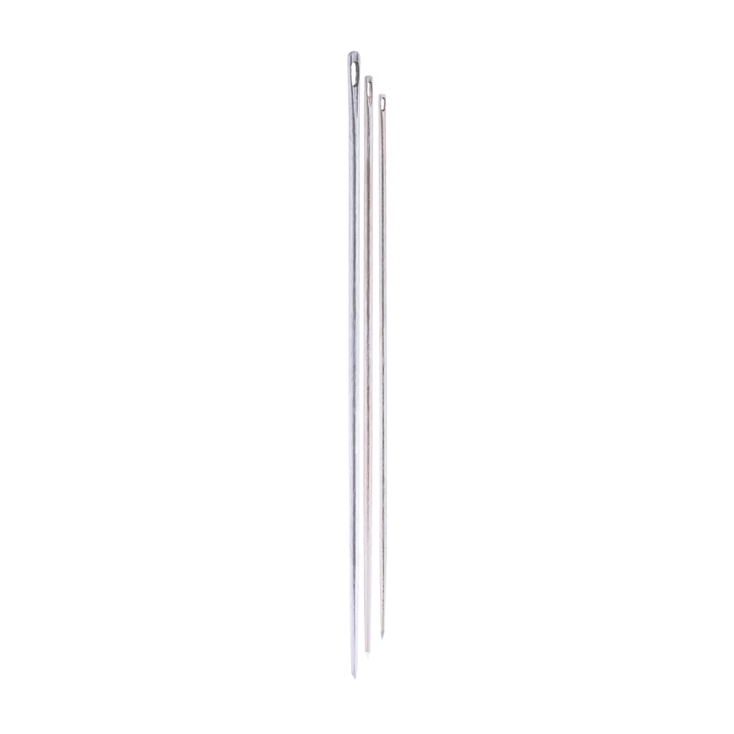 Six high quality Japanese needles within a labeled, clear, cork topped tube. These needles are polished lengthwise to ensure smooth fabric piercing. Needles are nickel-plated steel, are flexible and warp resistant and run smoothly through fabric.