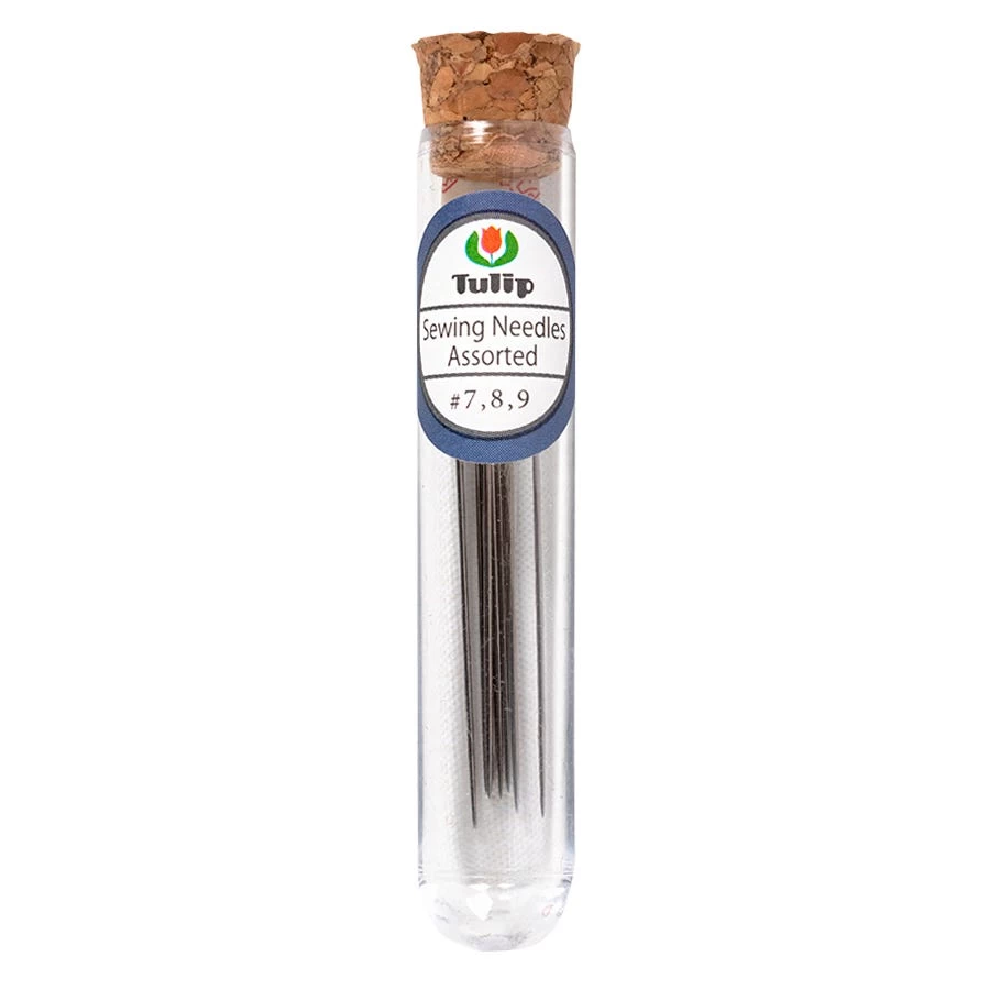 Eight high quality Japanese needles within a labeled, clear, cork topped tube. These needles are polished lengthwise to ensure smooth fabric piercing perfect for sewing. Needles are nickel-plated steel, are flexible and warp resistant and run smoothly through fabric. Features: Includes eight needles Size: 7, 8 and 9