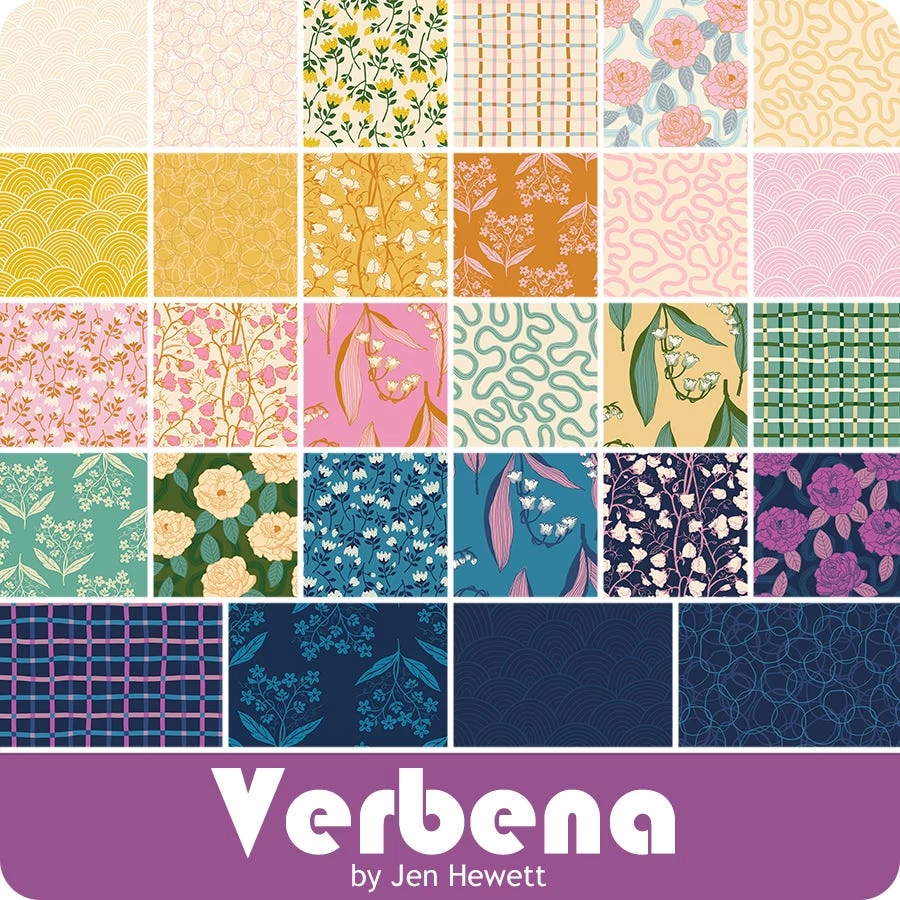 Verbena Fat Quarter Bundle includes 28 fat quarters. <br/><br/> Price will be $119.98. <br/><br/> Expected ship date of November 2023. <br><br> Add this collection to your next arrangement of fabrics to create a fun and eye-catching piece of art! <a tabindex="0" href="https://www.fatquartershop.com/jen-hewett-ruby-star-society">Jen Hewett</a> has created the most stunning collection called <a href="https://www.fatquartershop.com/ruby-star-society-fabrics/verbena-jen-hewett-ruby-star-society">Verbena</a>. Verbena is filled with blooming <a tabindex="0" href="https://www.fatquartershop.com/floral-fabric">florals</a> and intricate <a tabindex="0" href="https://www.fatquartershop.com/fabric-types-and-themes">geometric</a> designs, that are paired with bright and beautiful colors that would bring a certain flare to your next projects! Pair these prints with the corresponding <a tabindex="-1" title="Ruby Star Basics" href="https://www.fatquartershop.com/ruby-star-society-fabrics/ruby-star-basics-ruby-star-society-fabrics">Basics</a>; from <a tabindex="-1" title="Ruby Star Society" href="https://www.fatquartershop.com/ruby-star-society-fabrics">Ruby Star Society</a> to create some spectacular projects!